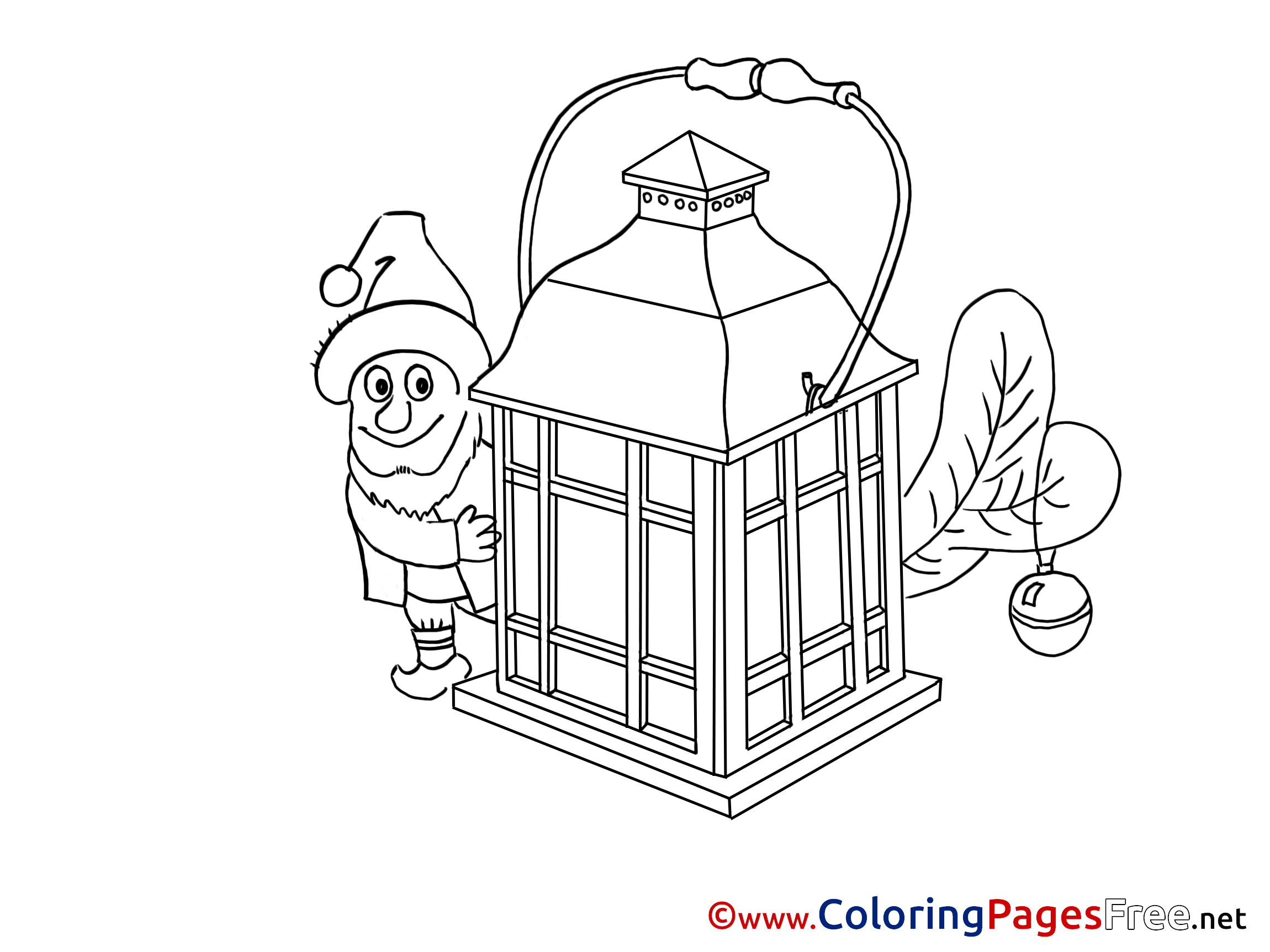 Original-Bild: Elf Lamp Colouring Page Advent free