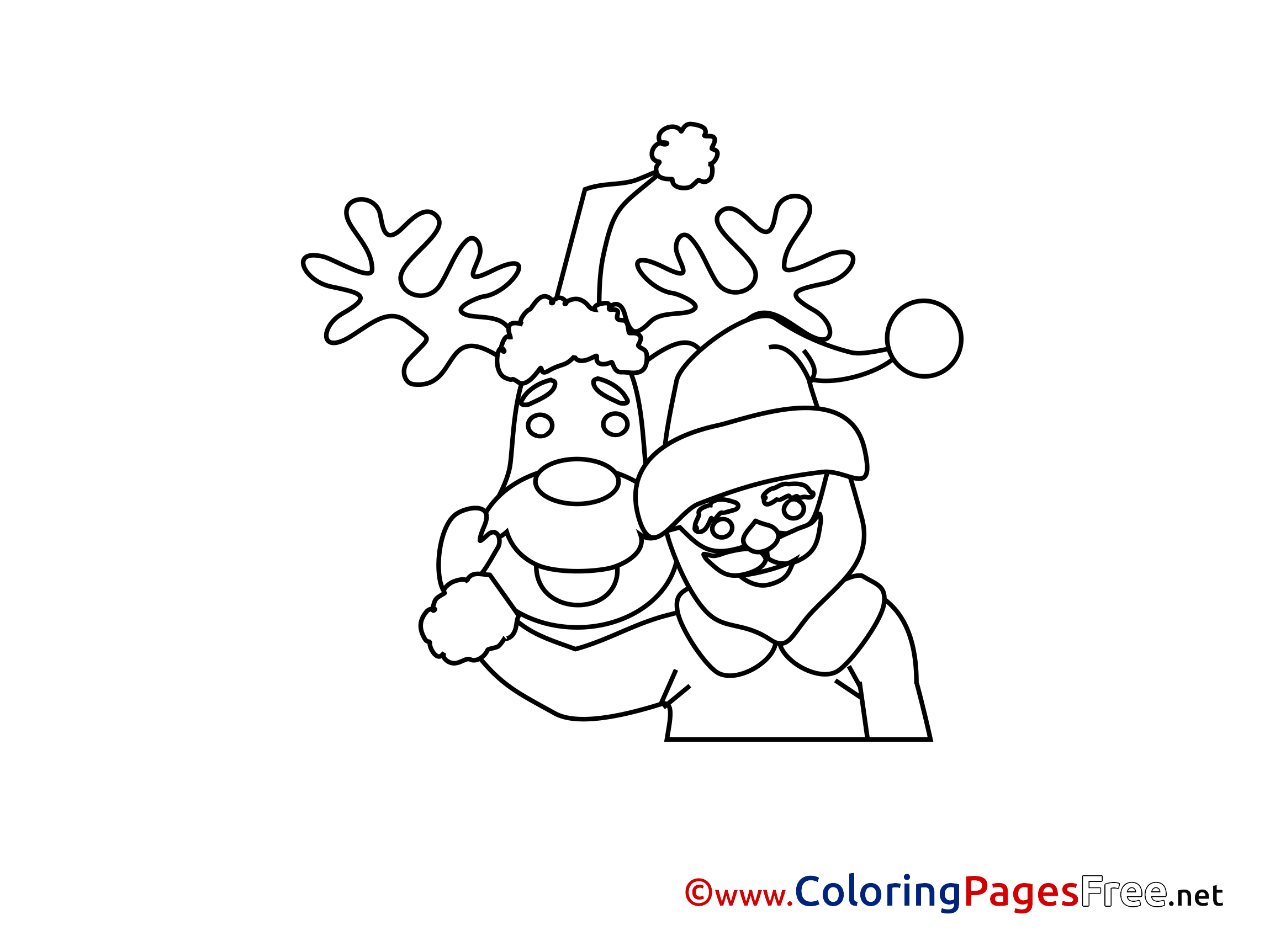 Title of Coloring Sheet: Friends Deer Santa Claus free Colouring Page Advent