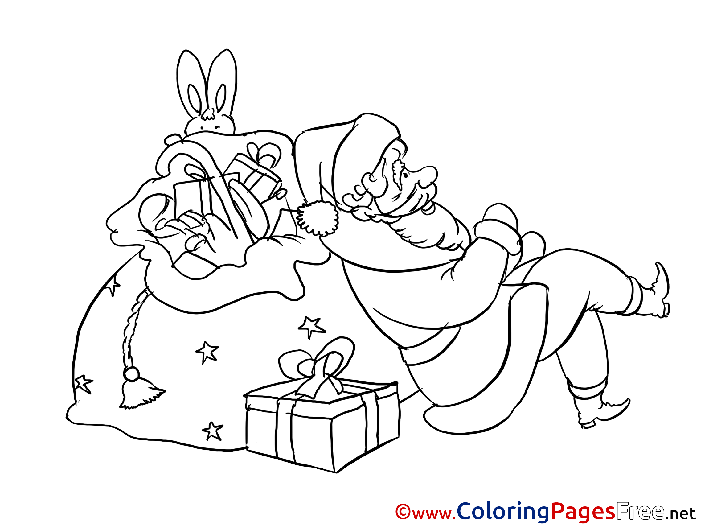 Rabbit Santa Claus printable Advent Coloring Sheets