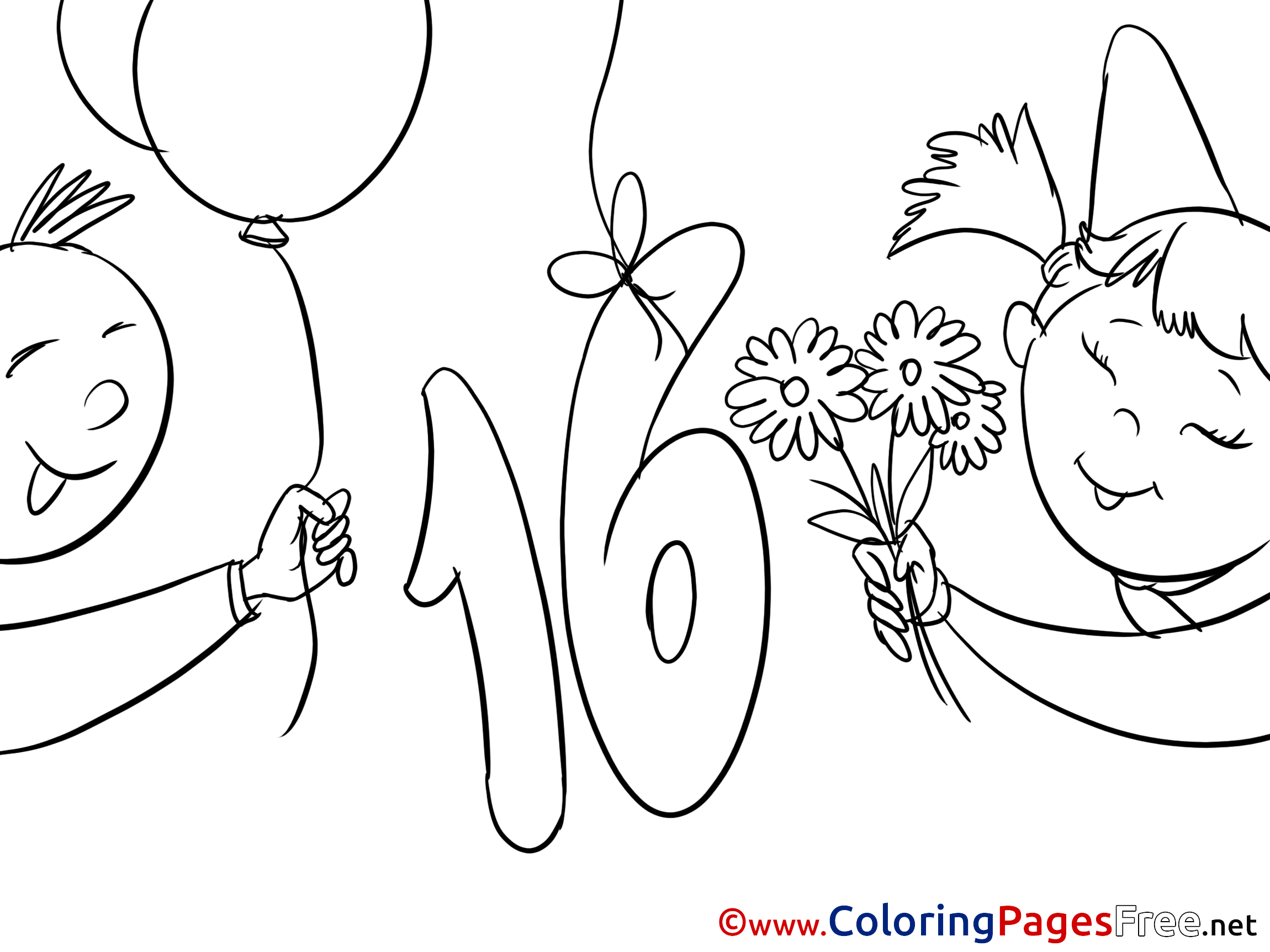 Title of Coloring Sheet: 16 Years download Birthday Coloring Pages