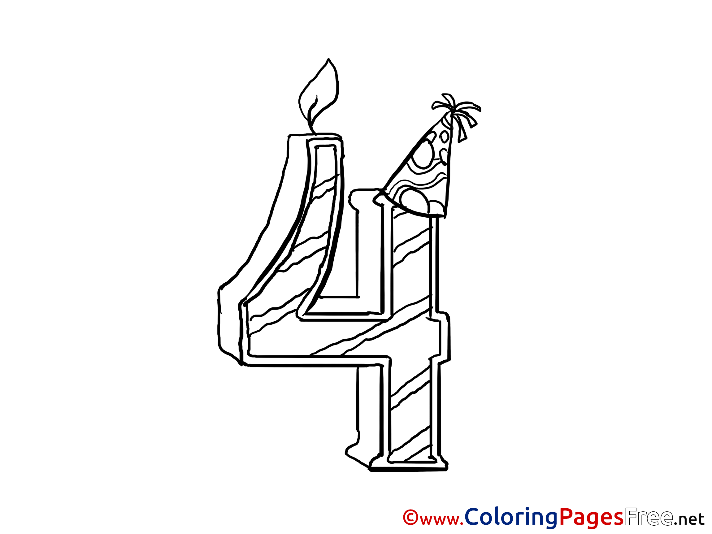 4 Years printable Birthday Coloring Sheets