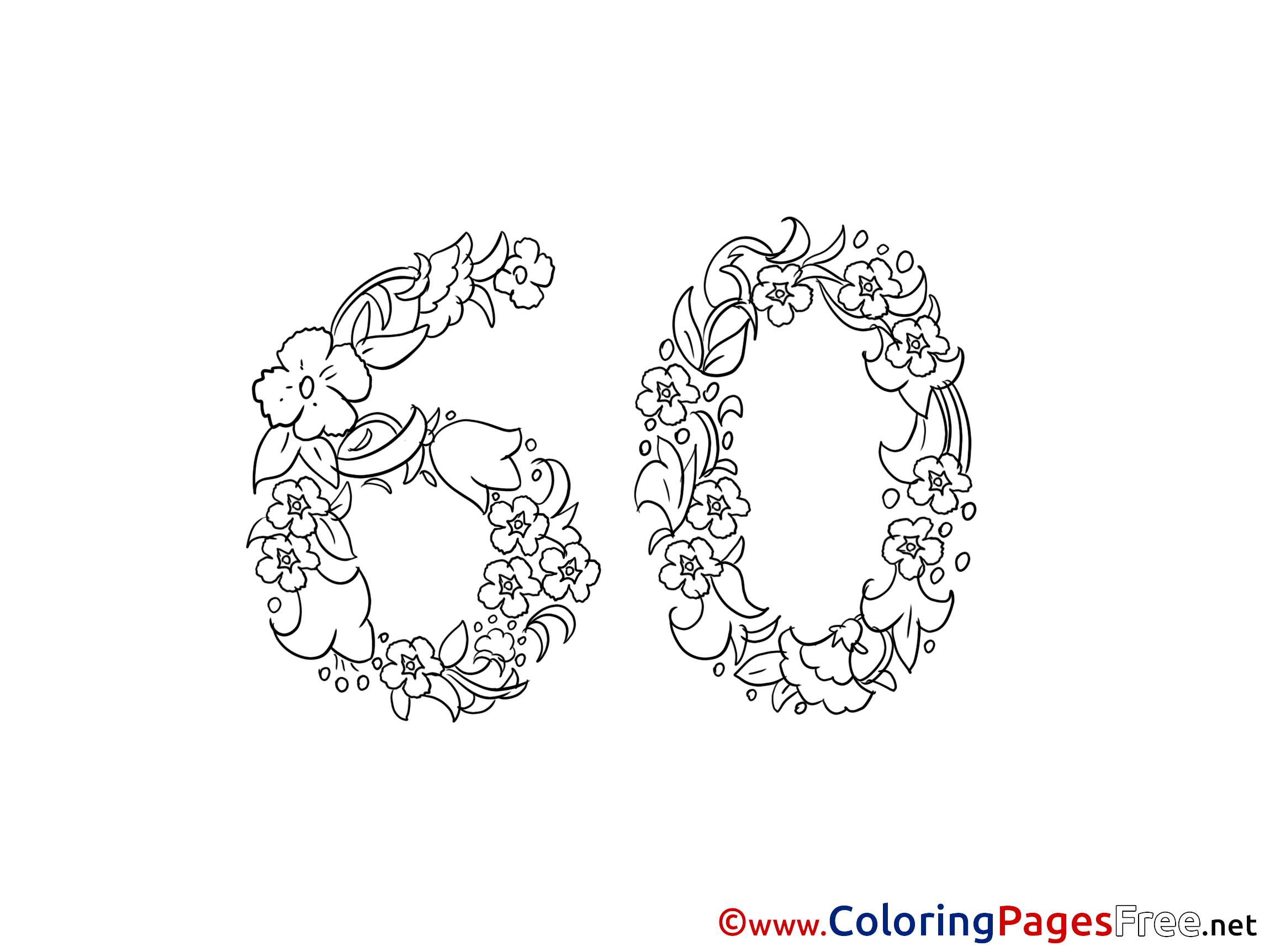 60 Years for Kids Birthday Colouring Page