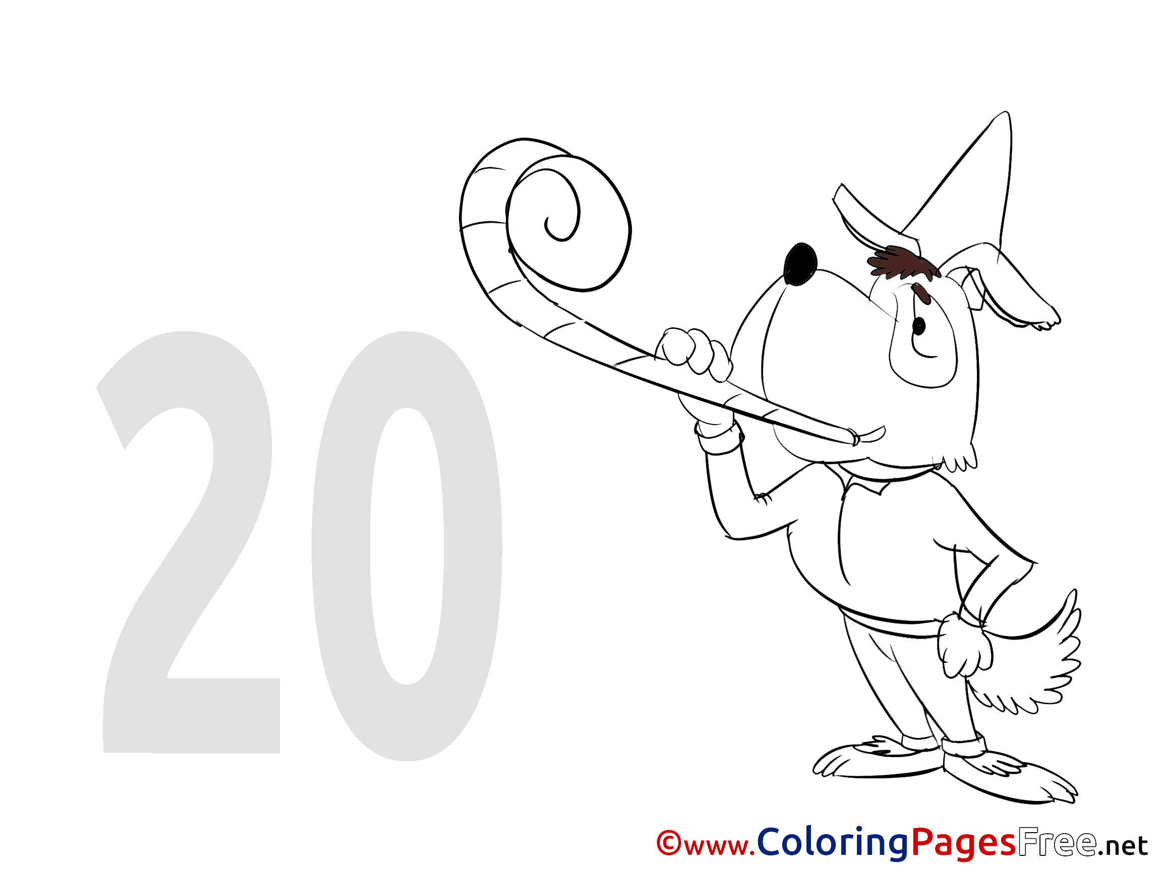 Title of Coloring Sheet: Dog 20 Years for Kids Birthday Colouring Page
