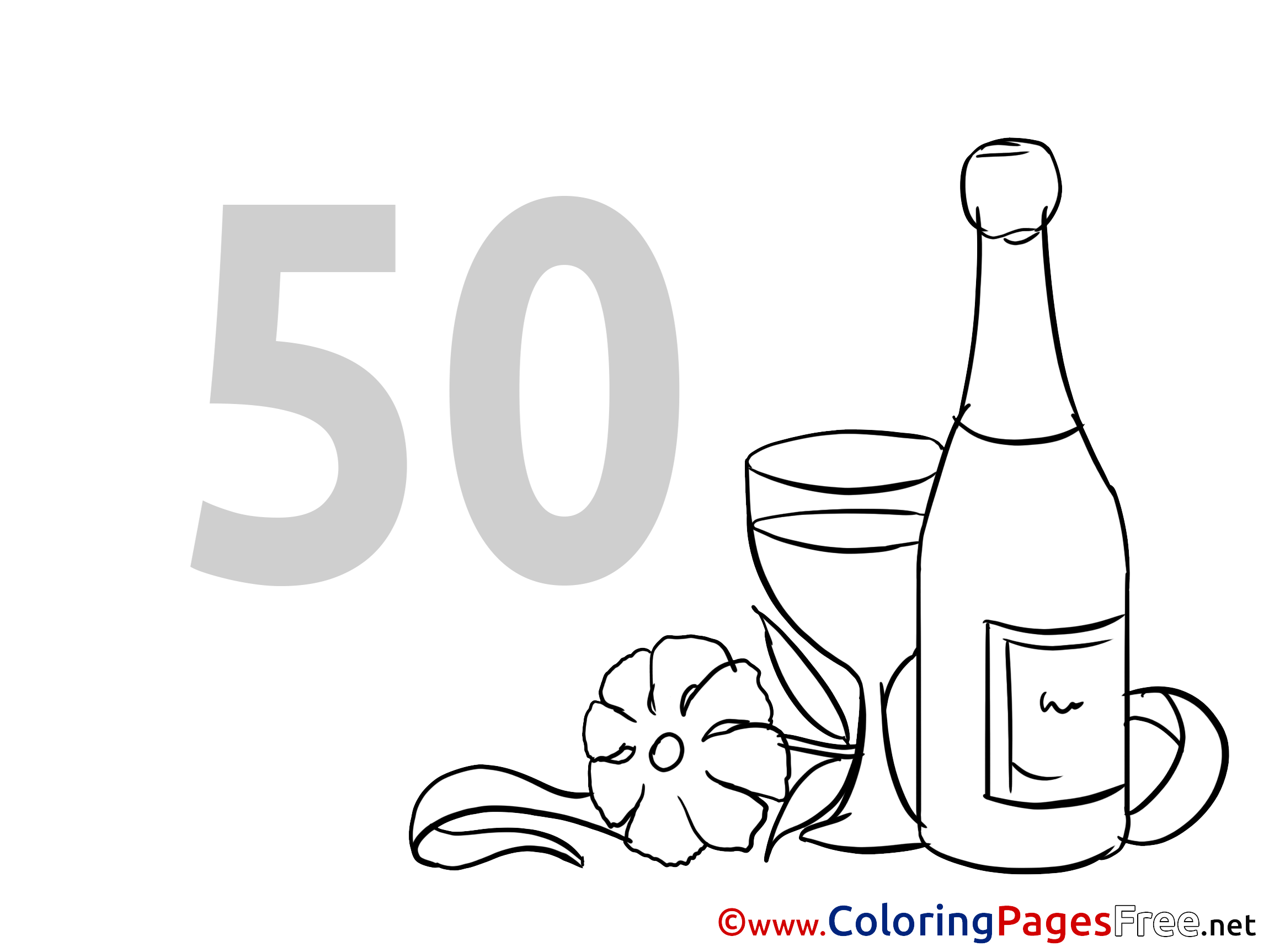 Title of Coloring Sheet: Shampagne 50 Years Colouring Sheet download Birthday