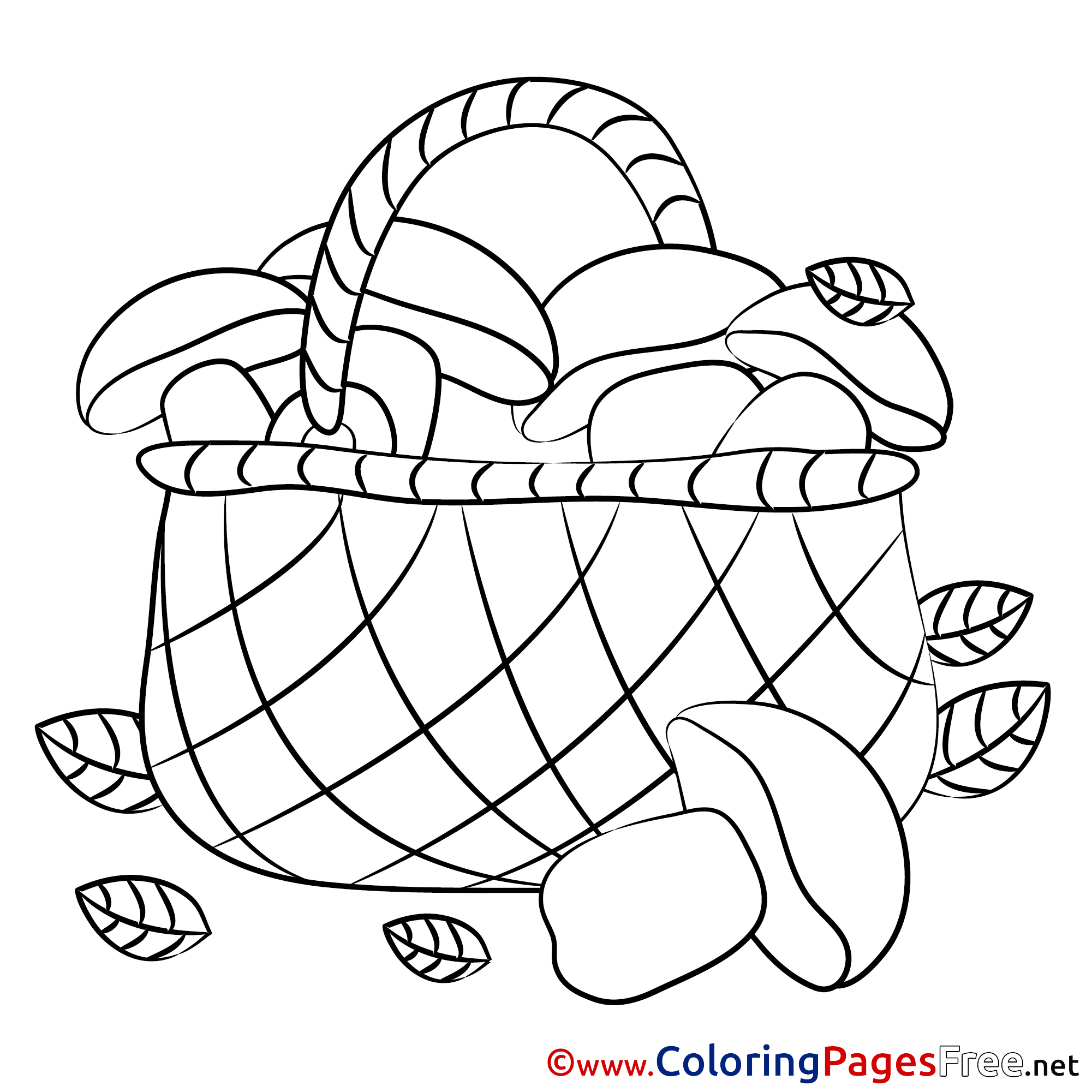 Title of Coloring Sheet: Basket Mushrooms Kids download Coloring Pages