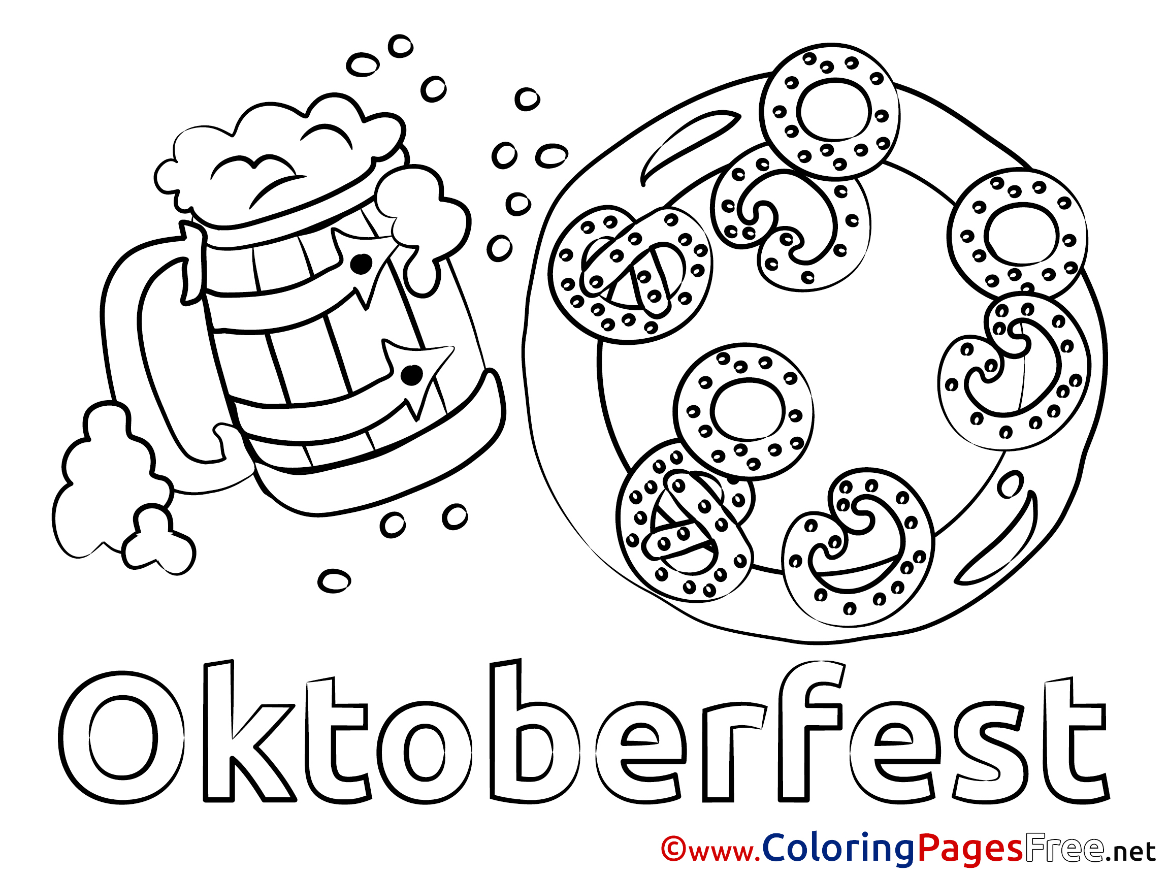 Title of Coloring Sheet: Pretzel Oktoberfest Kids download Coloring Pages