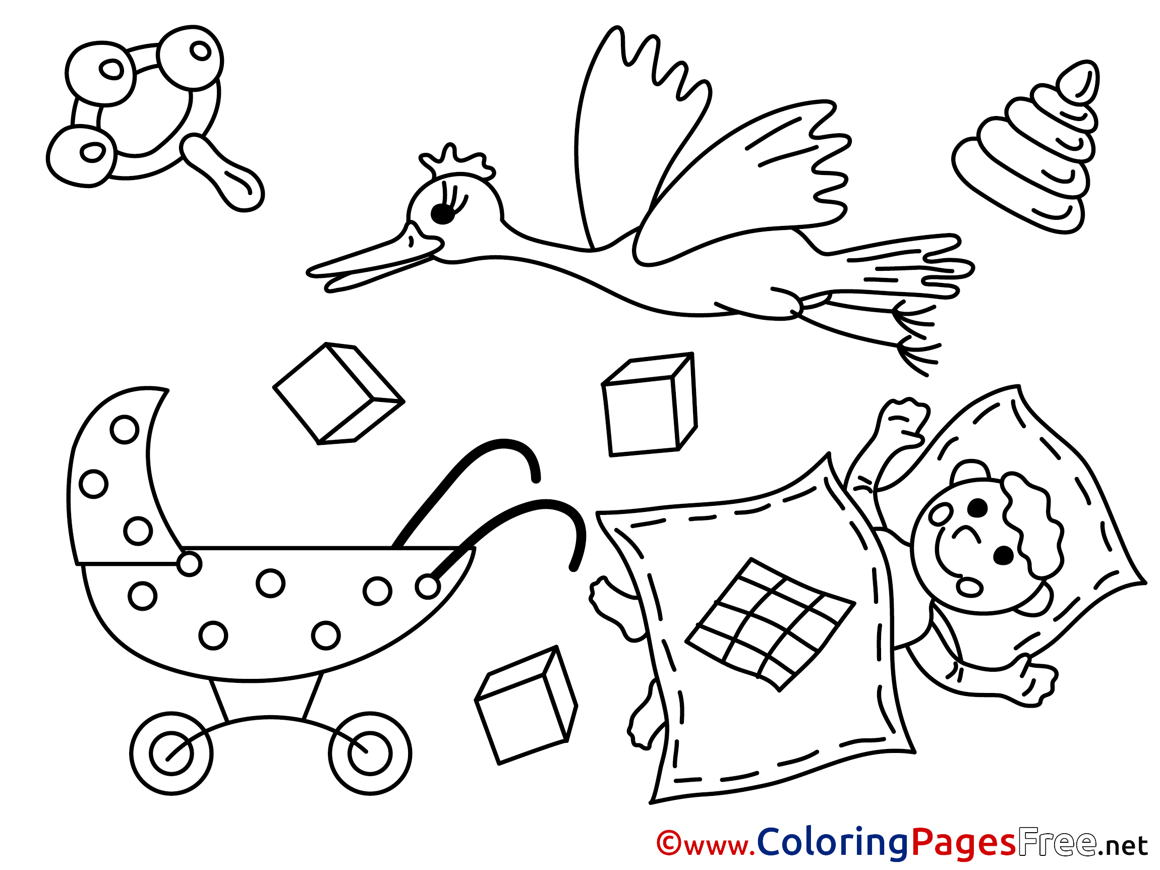 Title of Coloring Sheet: Rattle Stork Children download Colouring Page