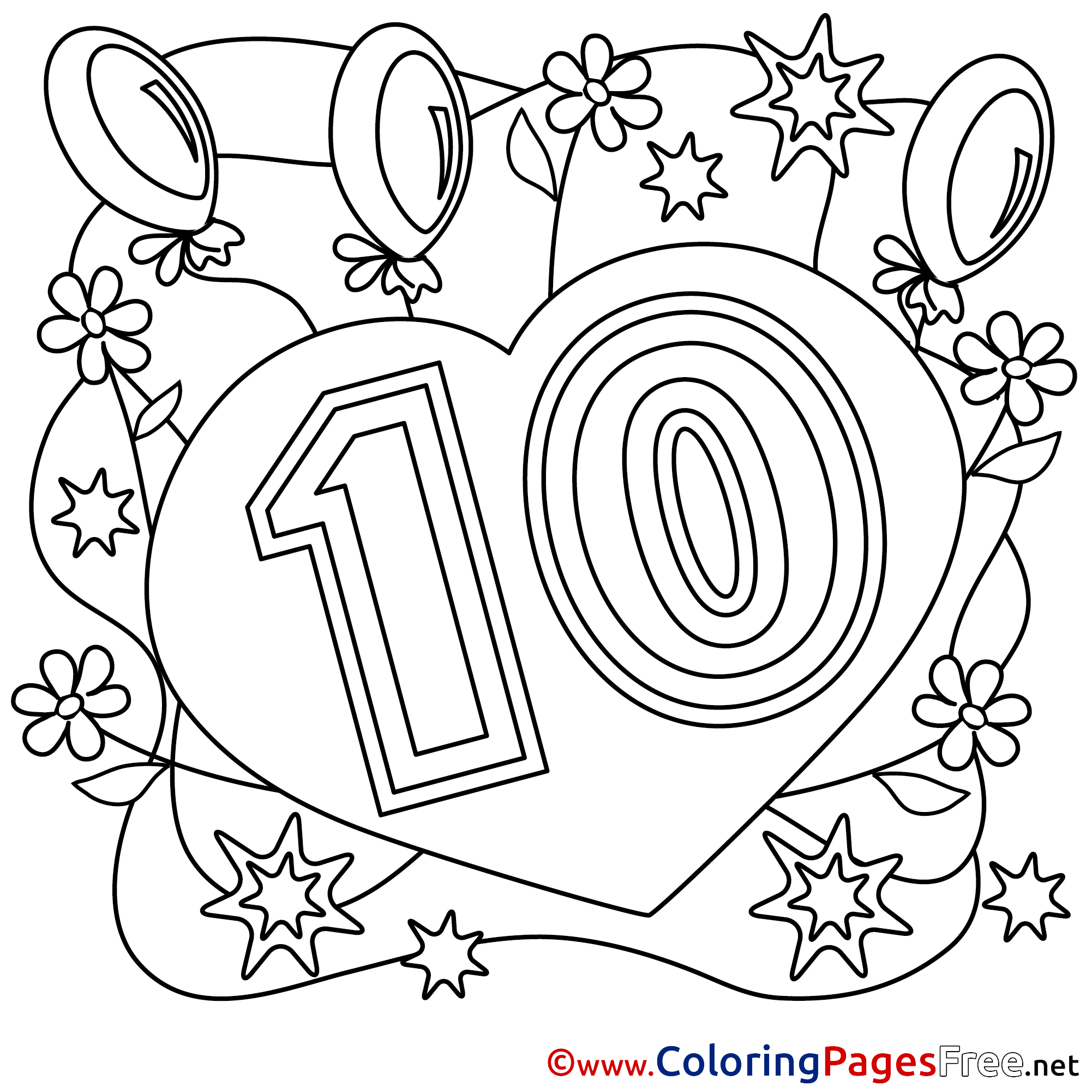 Original-Bild: 10 Years Congratulation Colouring Sheet Happy Birthday