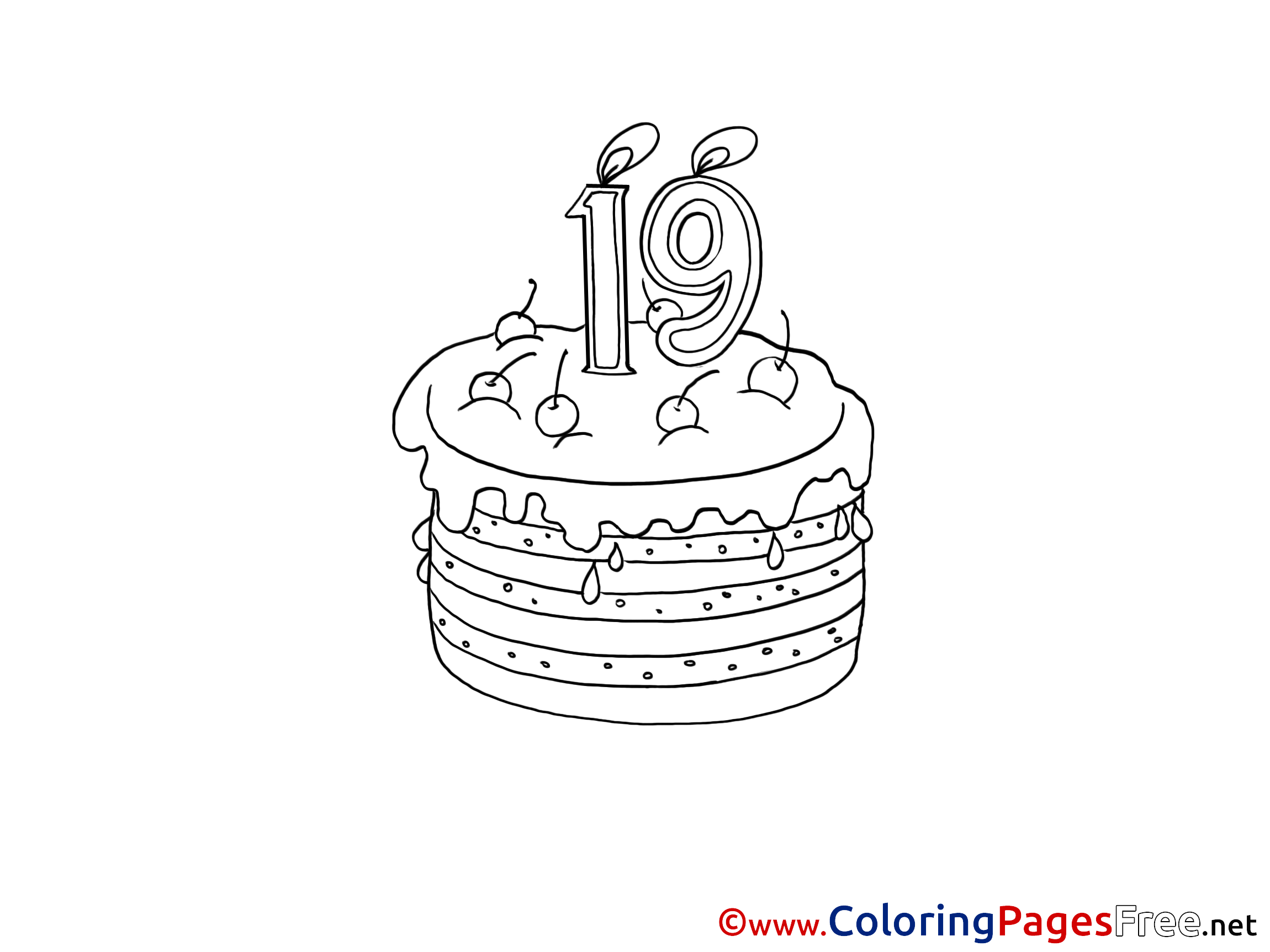 Title of Coloring Sheet: 19 Years Cake printable Happy Birthday Coloring Sheets