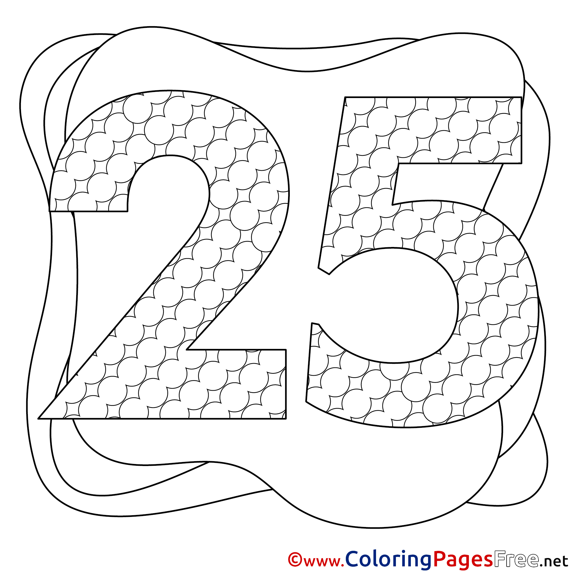 Title of Coloring Sheet: 25 Years Happy Birthday Colouring Sheet free