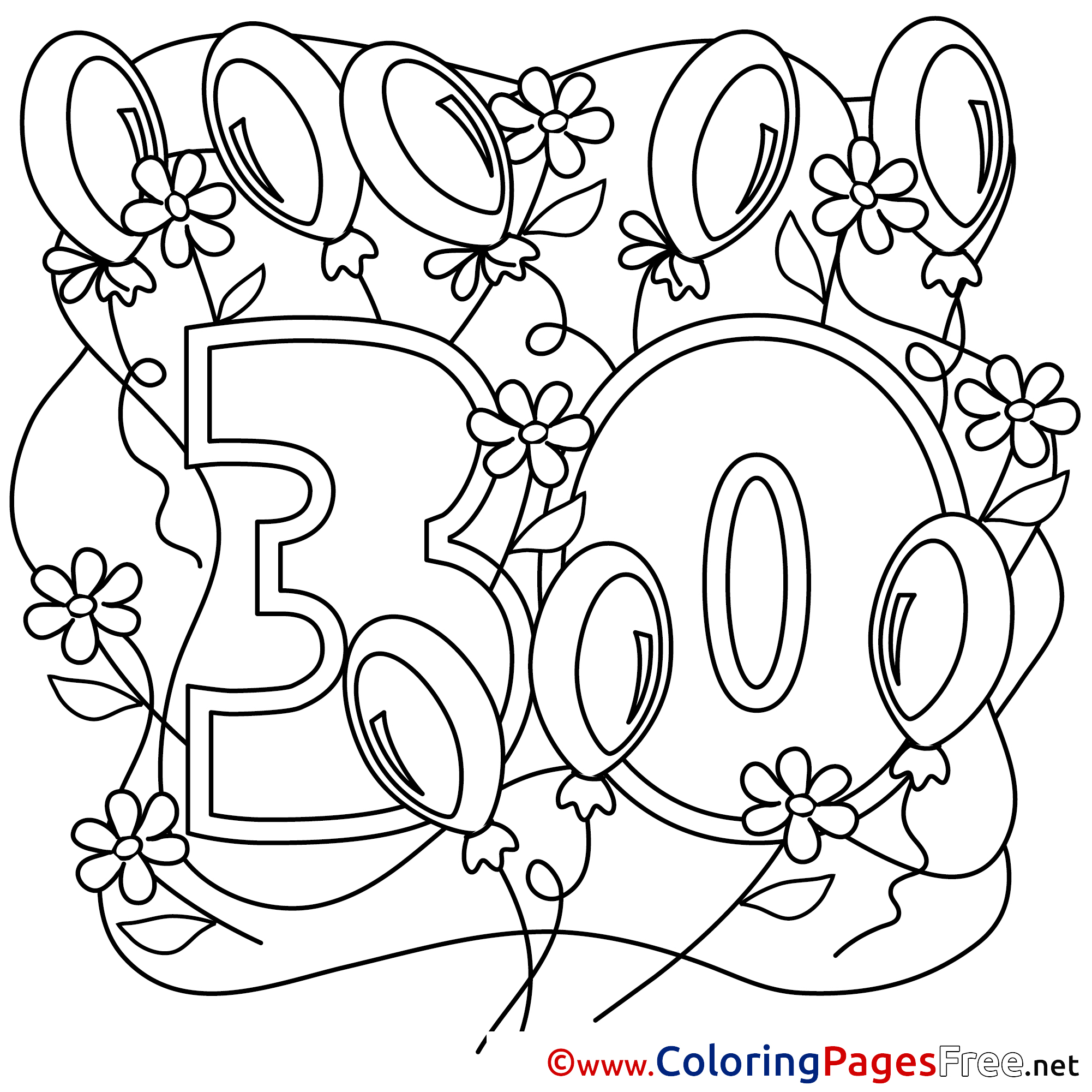 Title of Coloring Sheet: 30 Years for Kids Happy Birthday Colouring Page