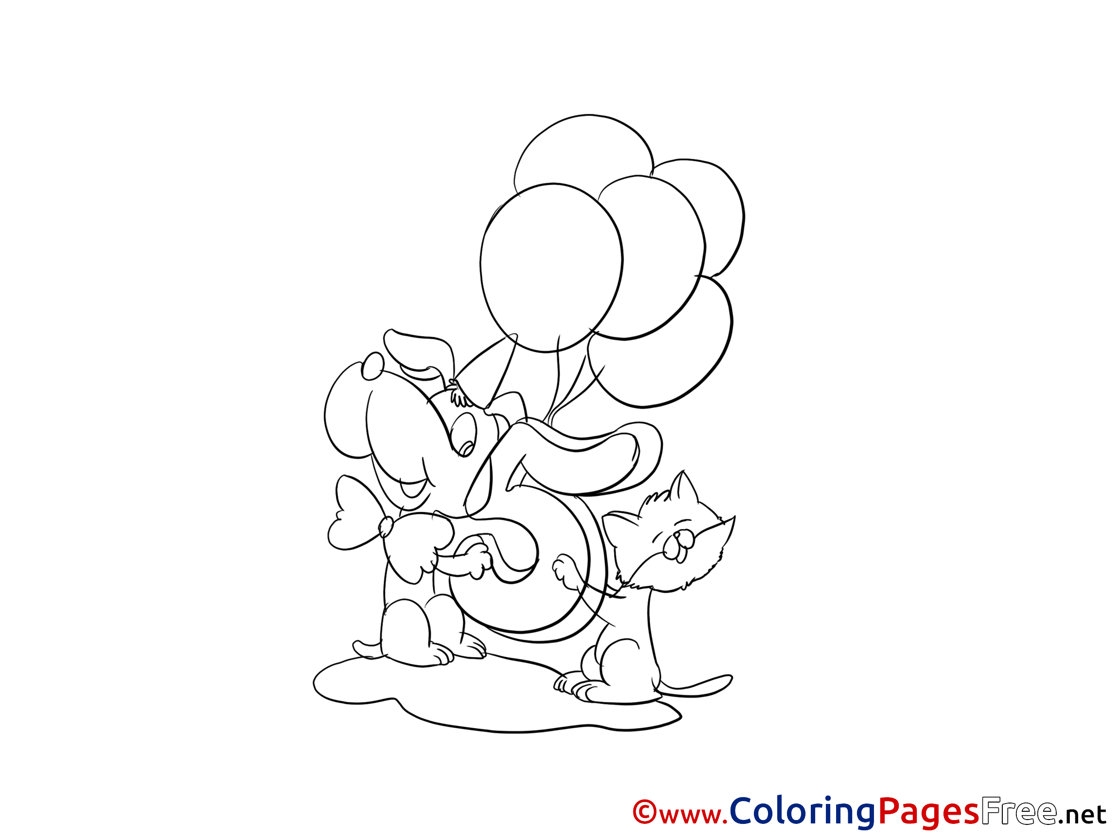 5 Years Pets free Colouring Page Happy Birthday