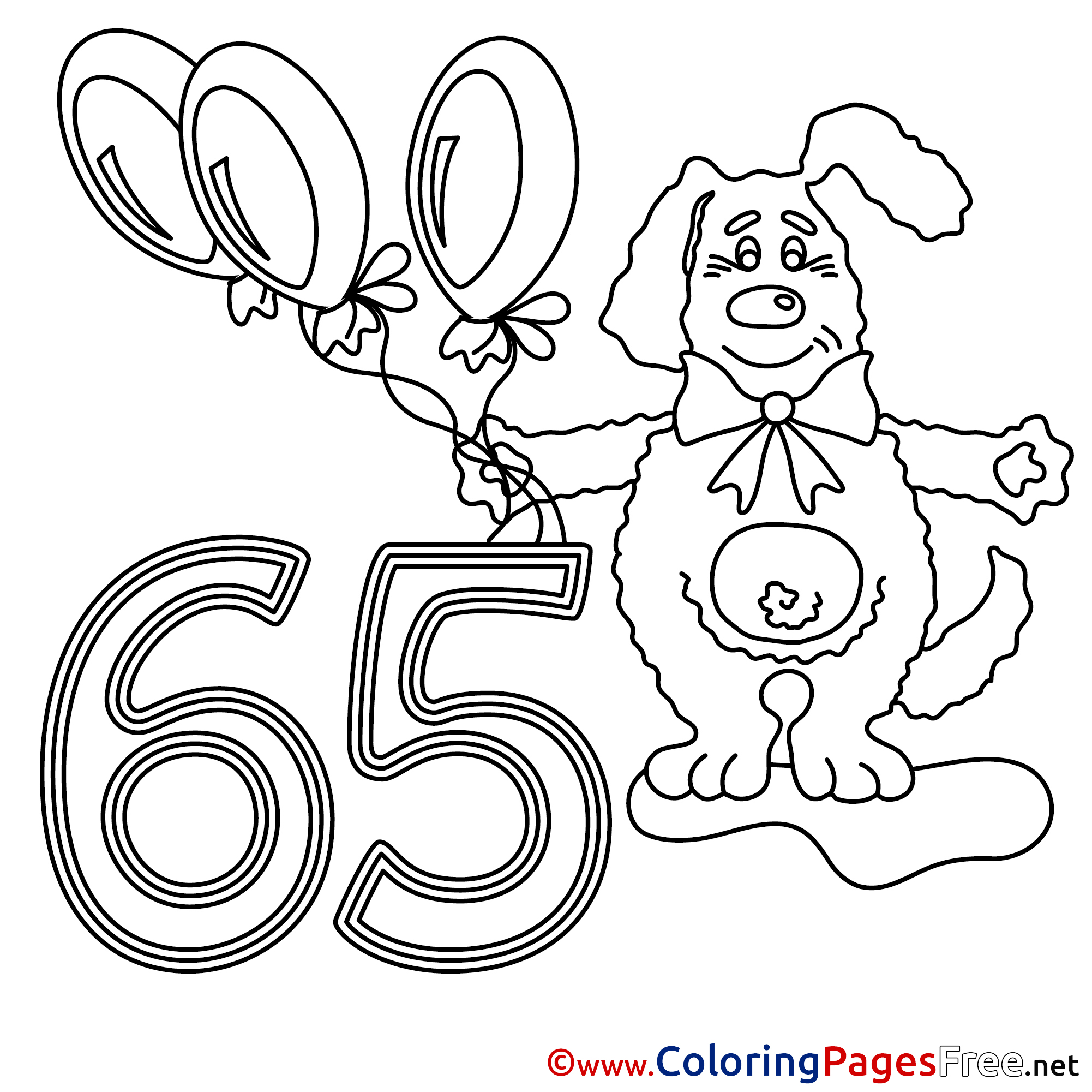 Title of Coloring Sheet: 65 Years Dog Happy Birthday free Coloring Pages