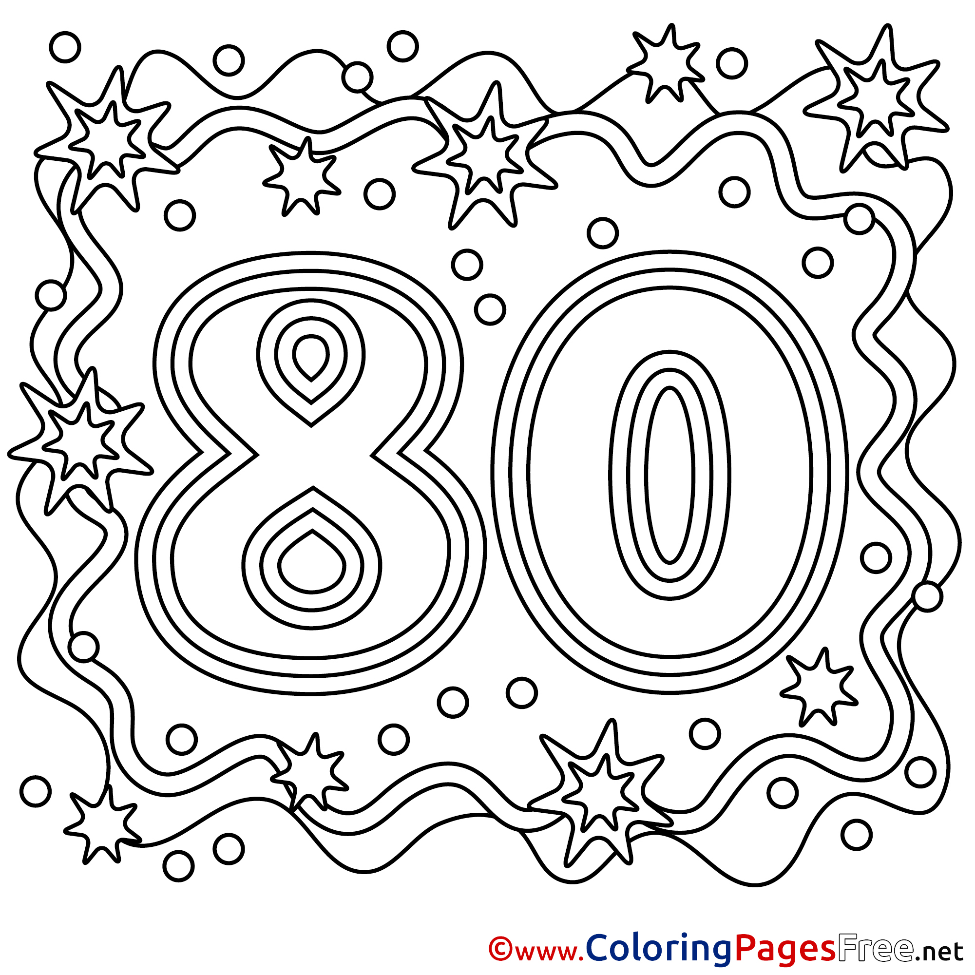 80 Years Coloring Sheets Happy Birthday free