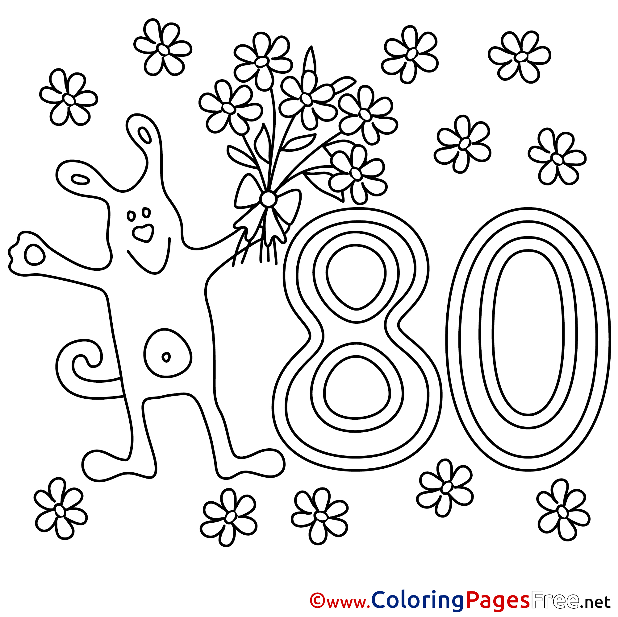 Title of Coloring Sheet: 80 Years Dog free Colouring Page Happy Birthday