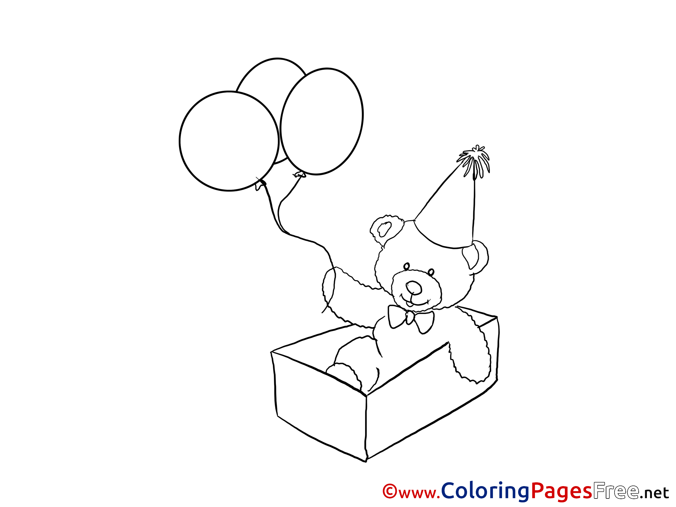Title of Coloring Sheet: Balloons Bear Children Happy Birthday Colouring Page