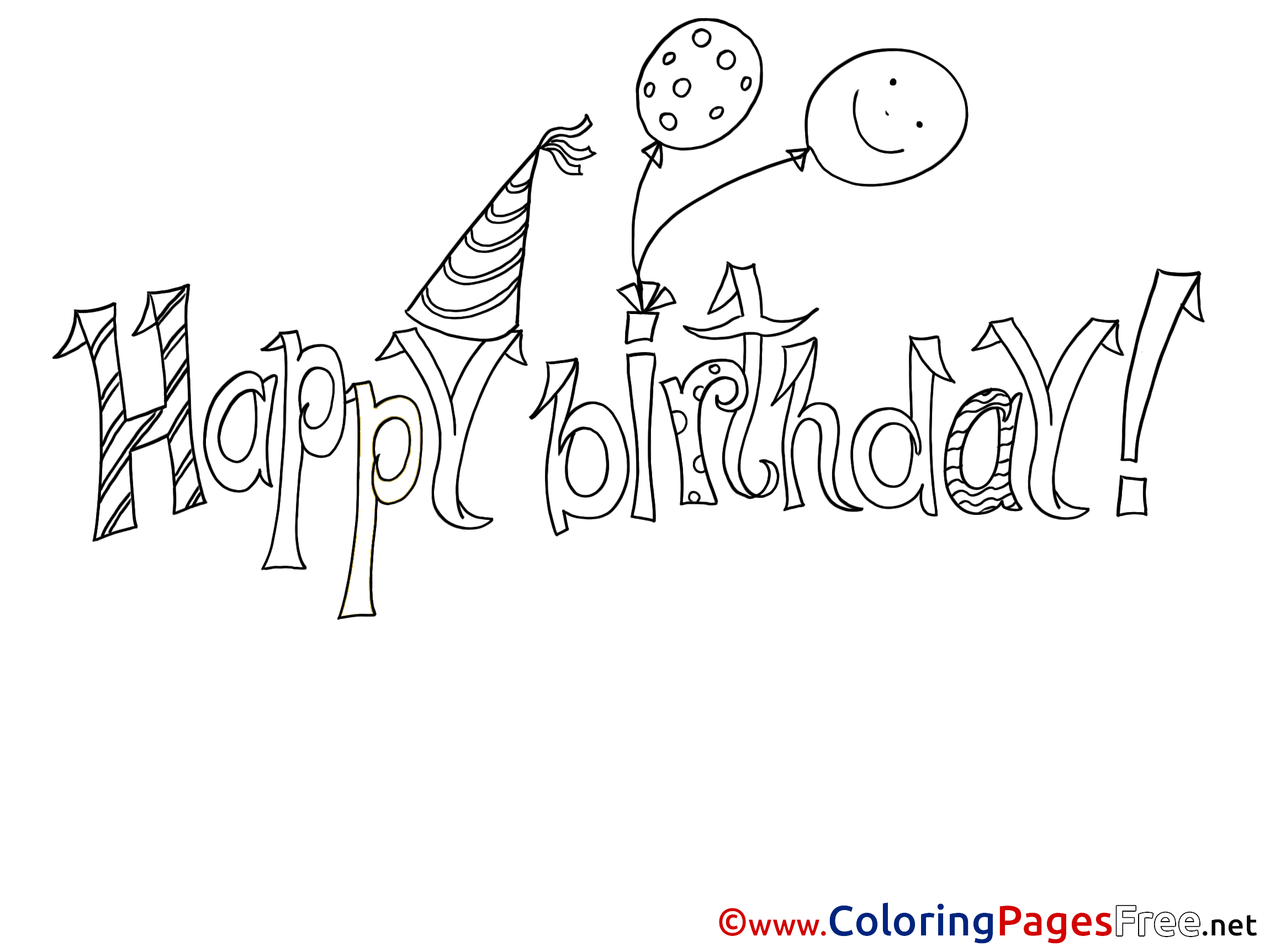 Balloons printable Coloring Pages Happy Birthday