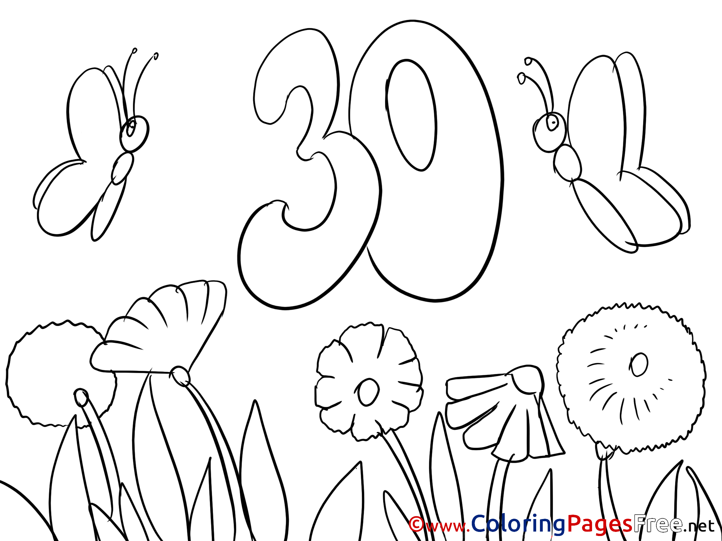 Butterflies 30 Years Colouring Sheet download Happy Birthday