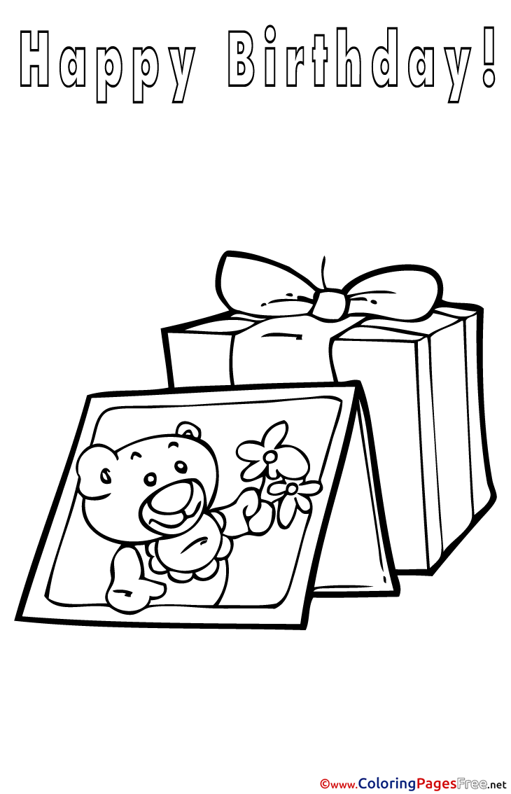 Card Bear Children Happy Birthday Colouring Page