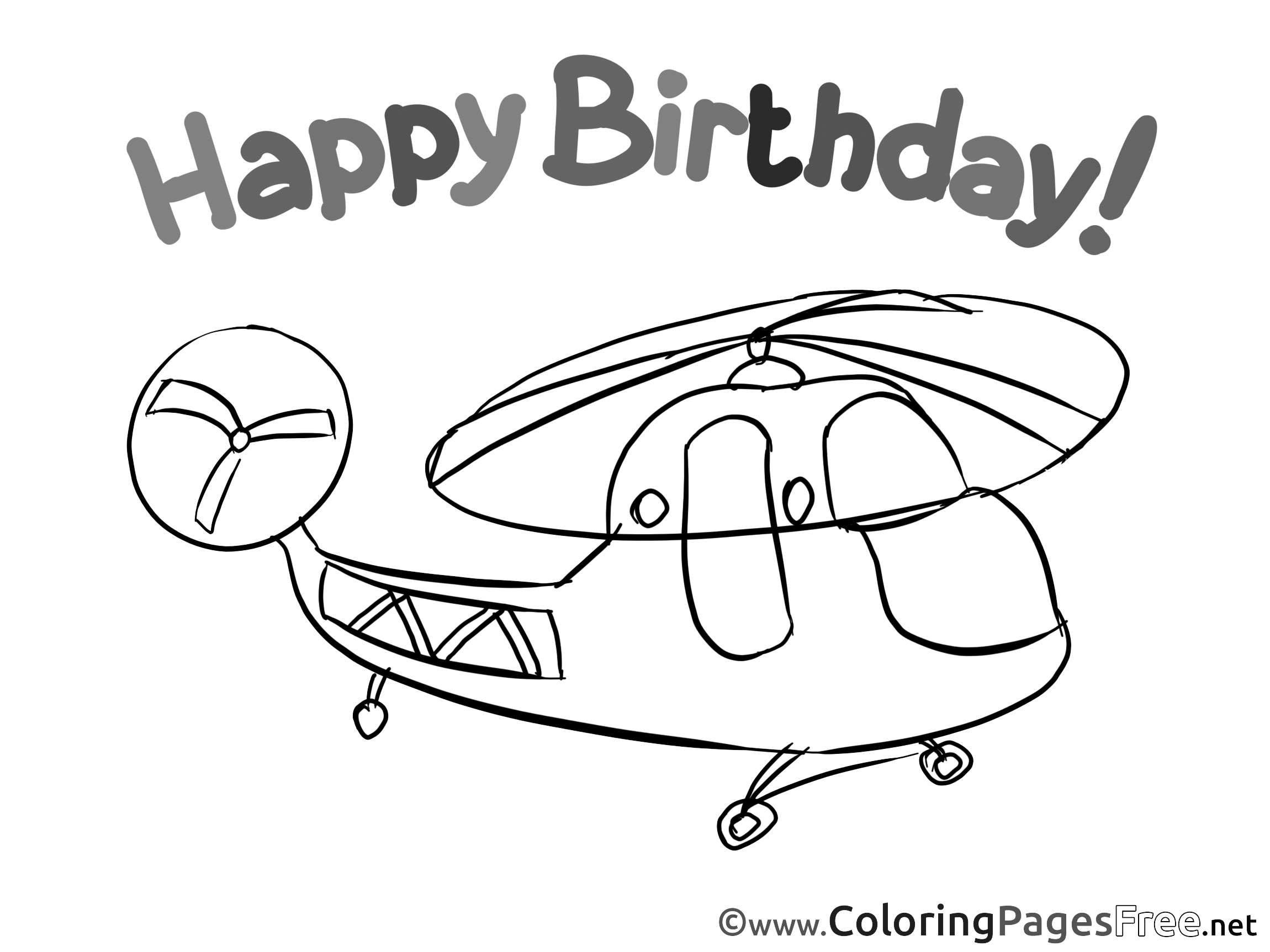 Helicopter Kids Happy Birthday Coloring Page