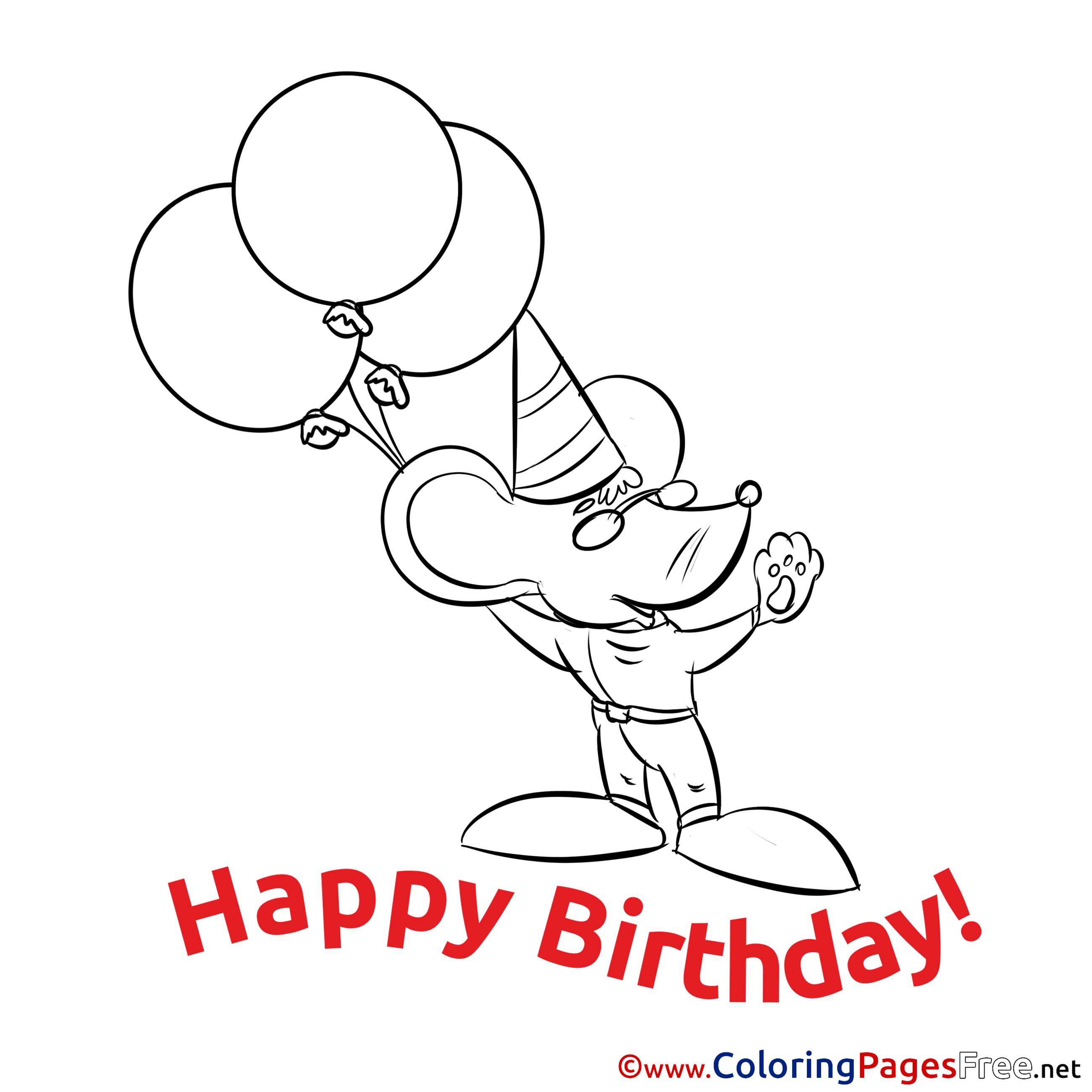 Title of Coloring Sheet: Mouse free Happy Birthday Coloring Sheets