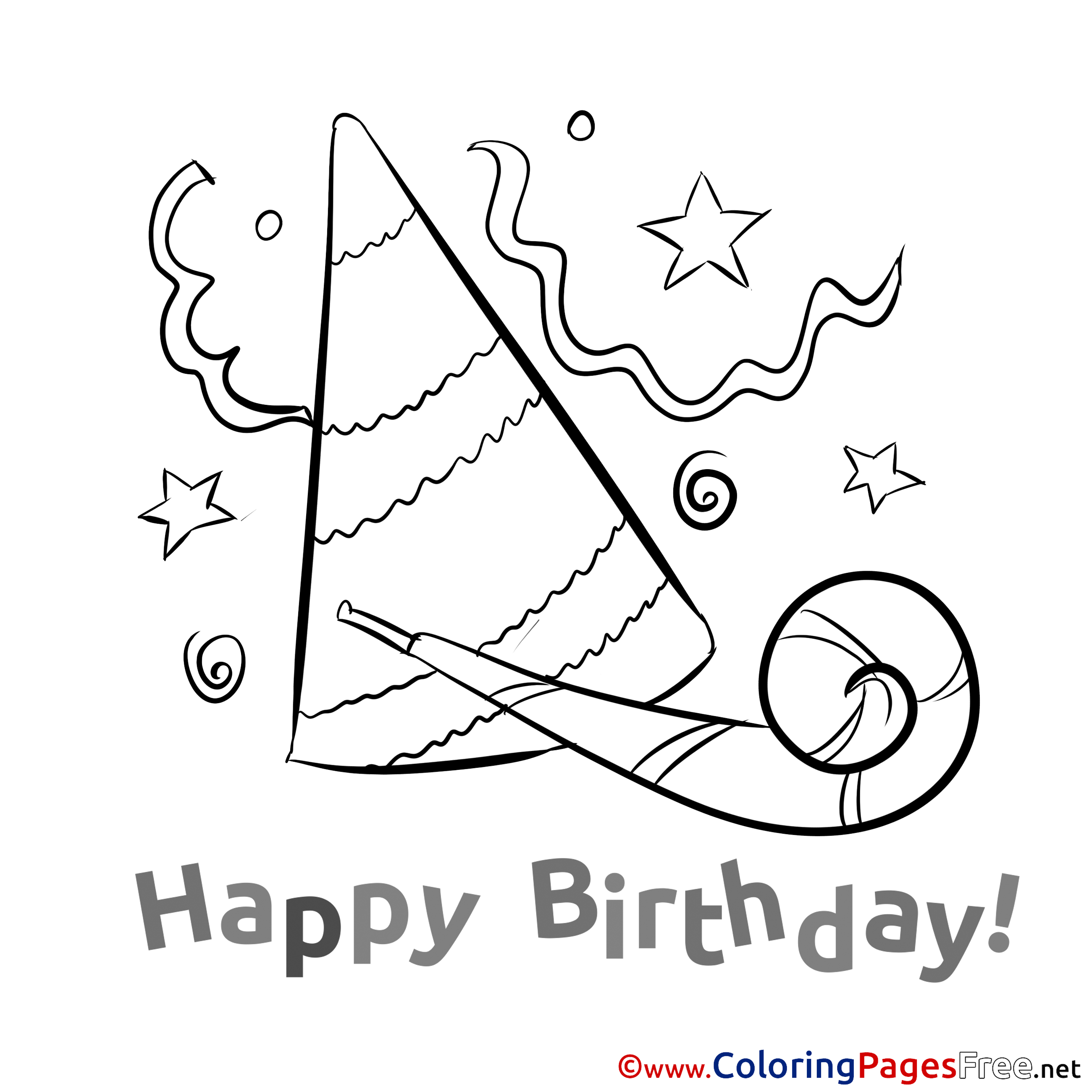 Party Hat for Kids Happy Birthday Colouring Page