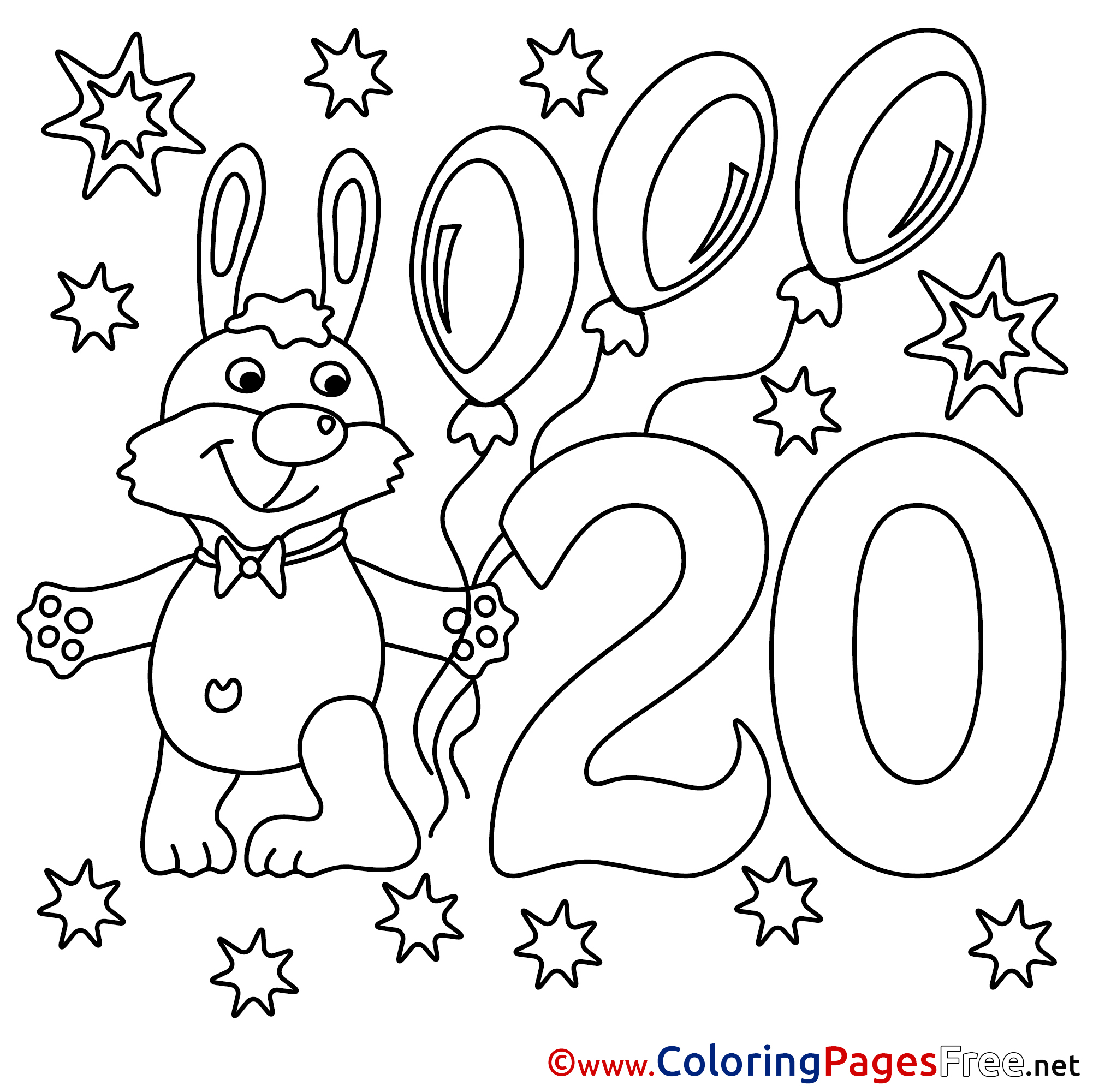 Title of Coloring Sheet: Rabbit 20 Years Colouring Sheet download Happy Birthday