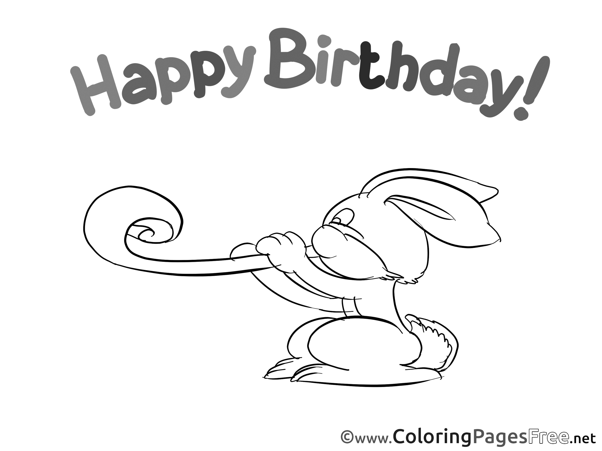 Title of Coloring Sheet: Rabbit Colouring Page Happy Birthday free