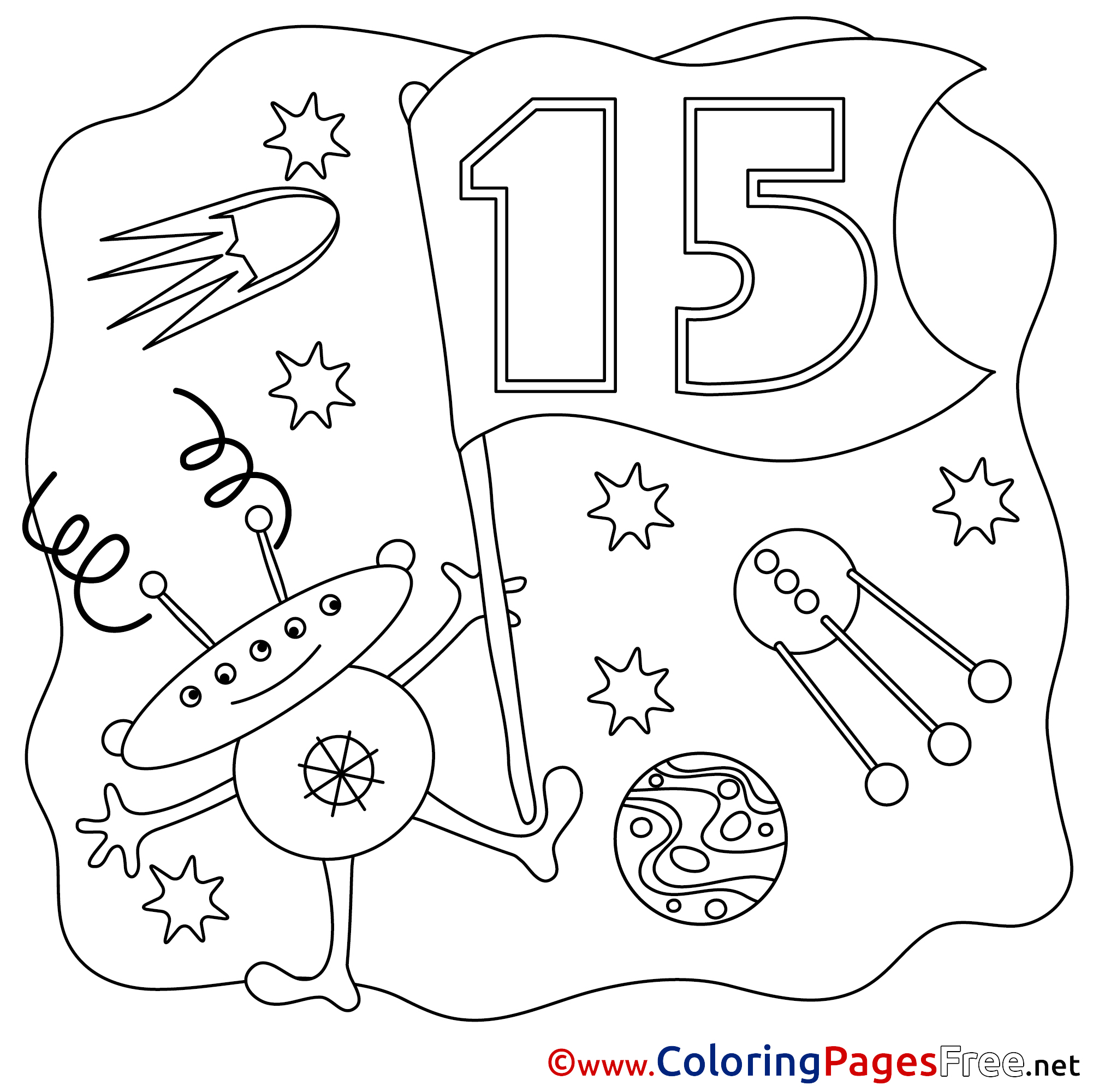 Original-Bild: Space 15 Years Kids Happy Birthday Coloring Page