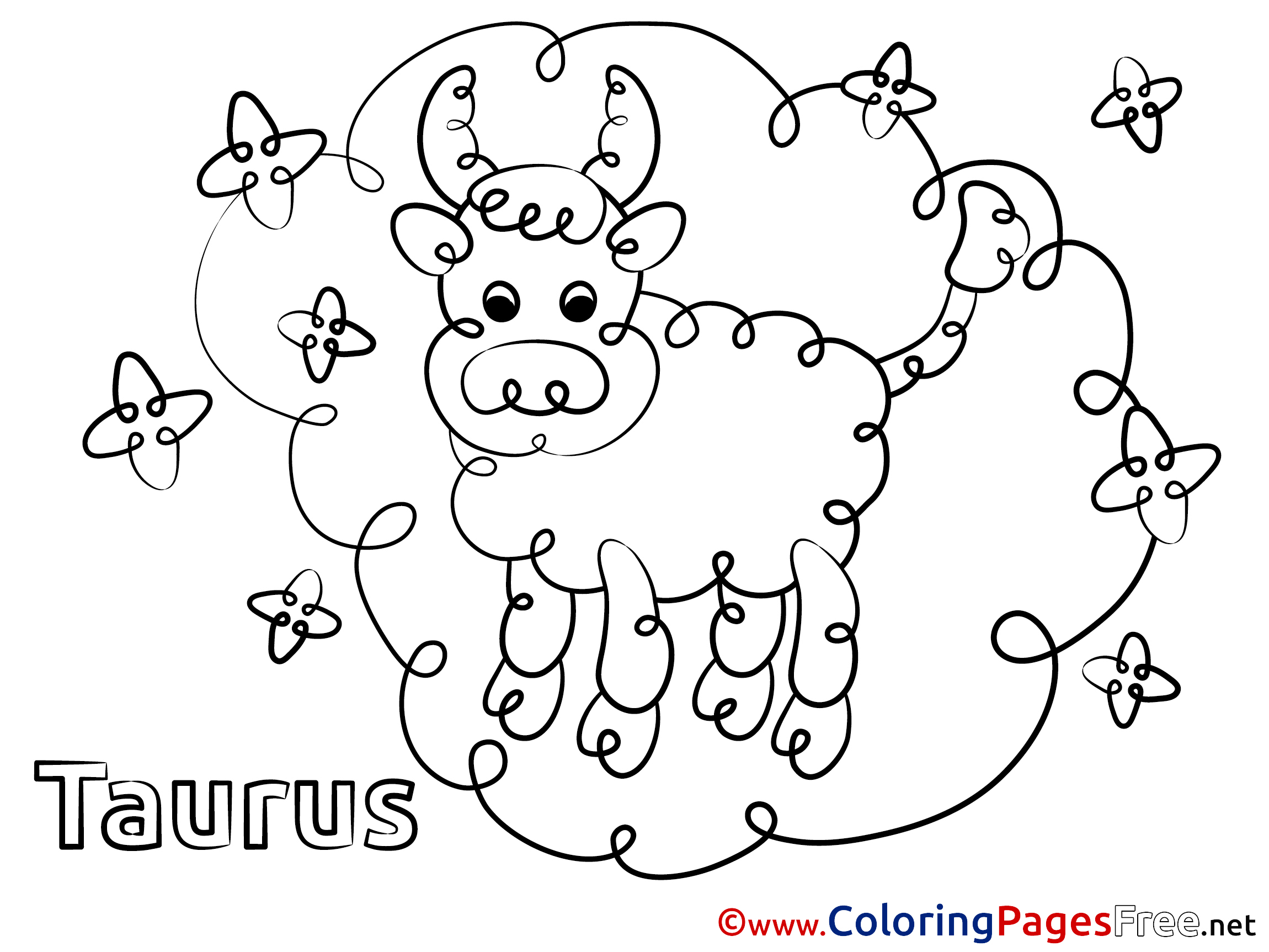 Title of Coloring Sheet: Taurus Happy Birthday free Coloring Pages