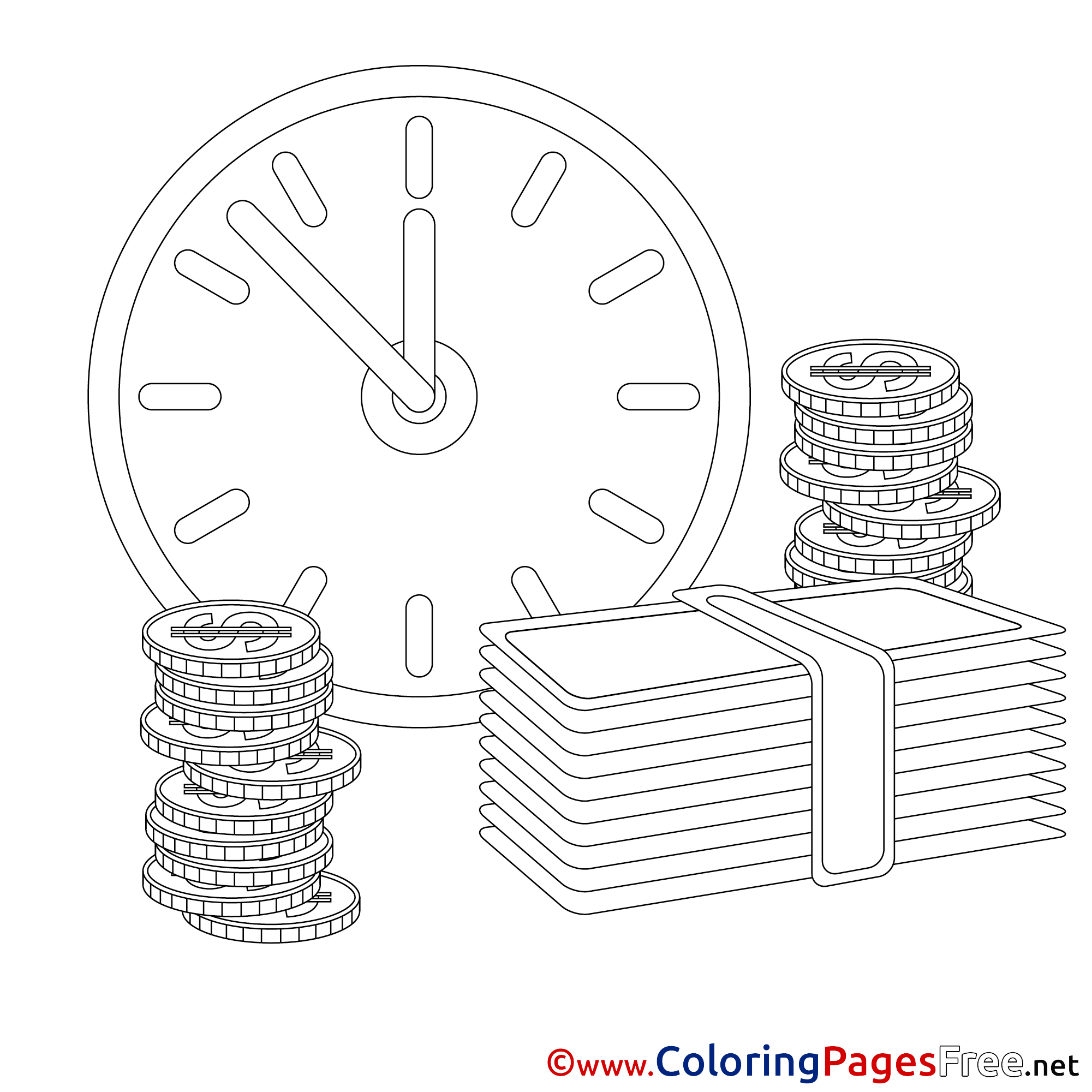 Title of Coloring Sheet: Clock Money Children Business Colouring Page