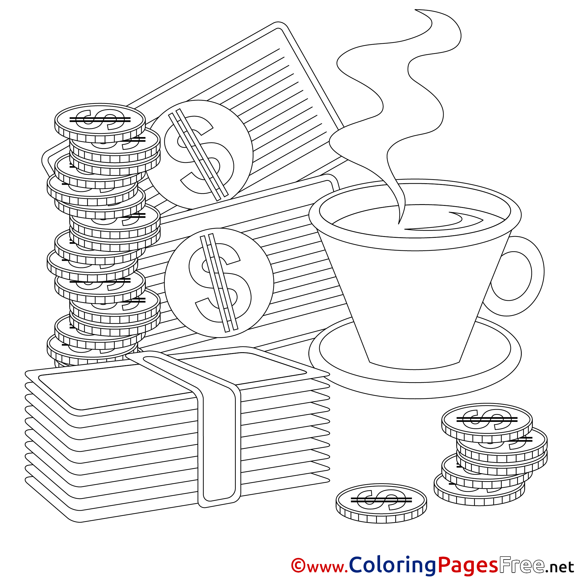 Title of Coloring Sheet: Coffee Money Business Colouring Sheet free