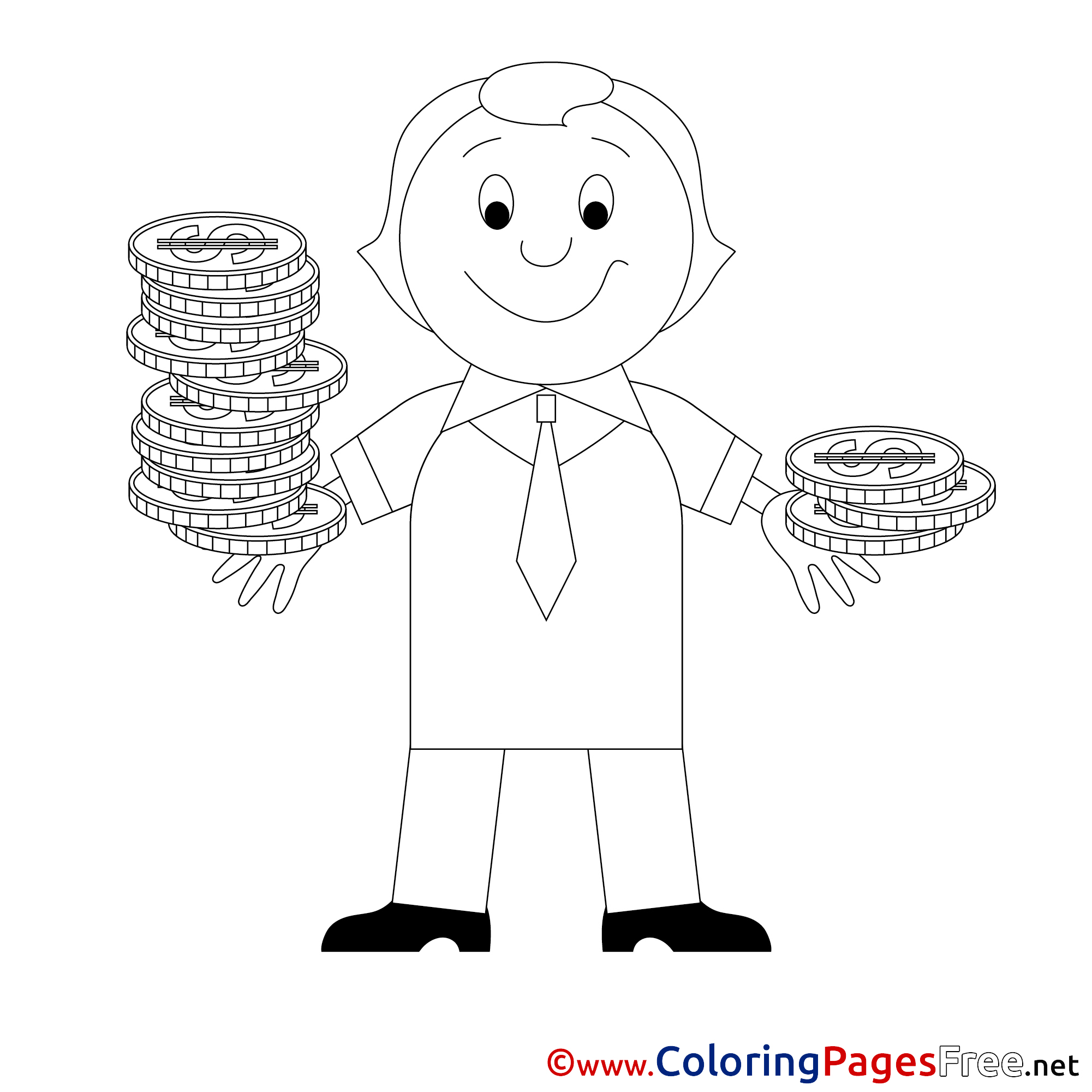 Coins for Kids Business Colouring Page