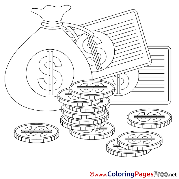 Title of Coloring Sheet: Money Children Business Colouring Page