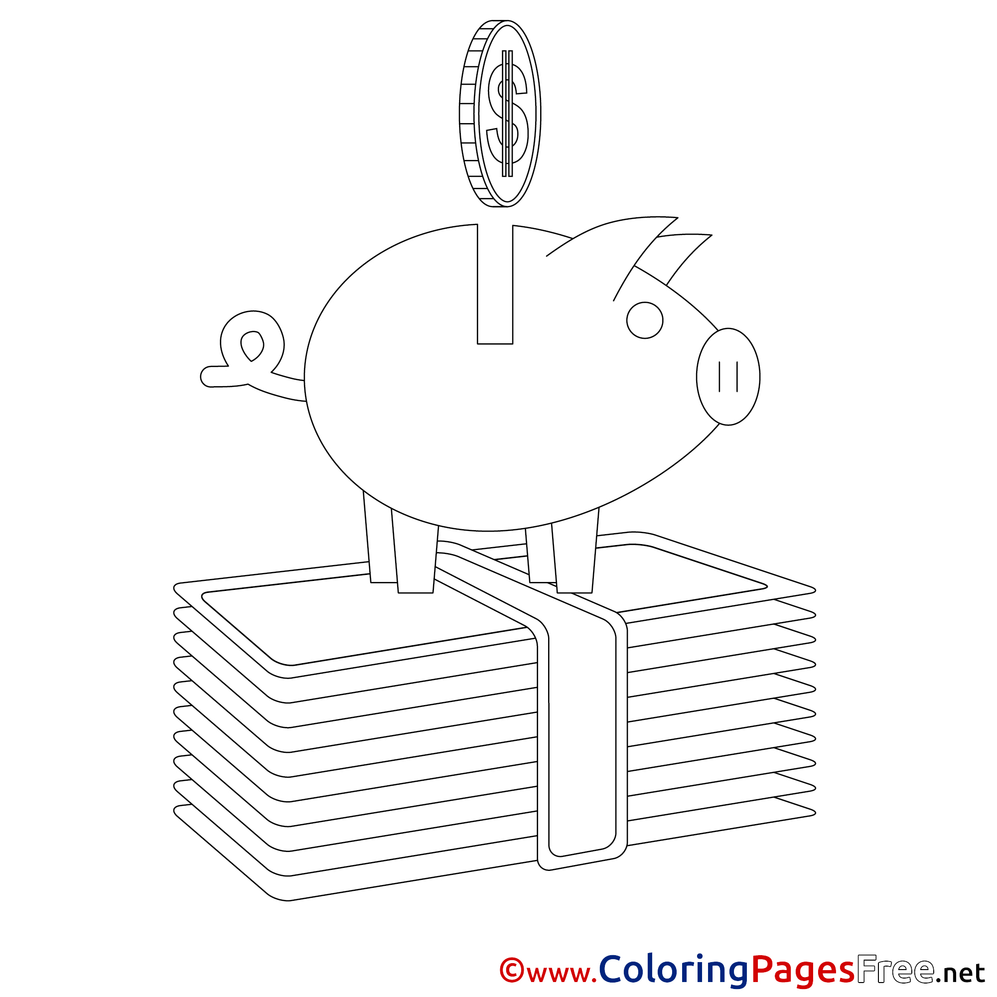 Piggy Bank for Kids Business Colouring Page