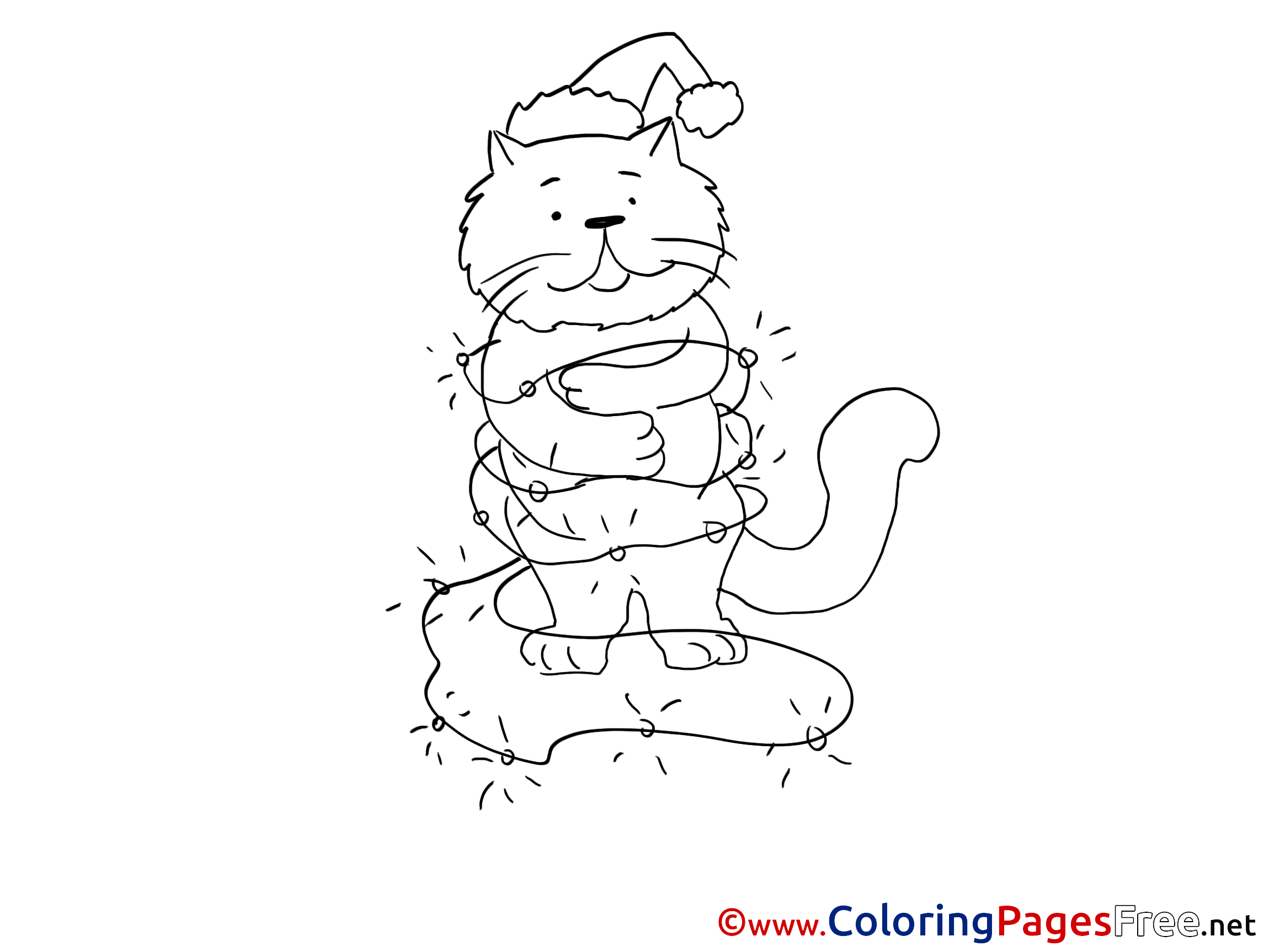 Christmas Cat for free Coloring Pages download