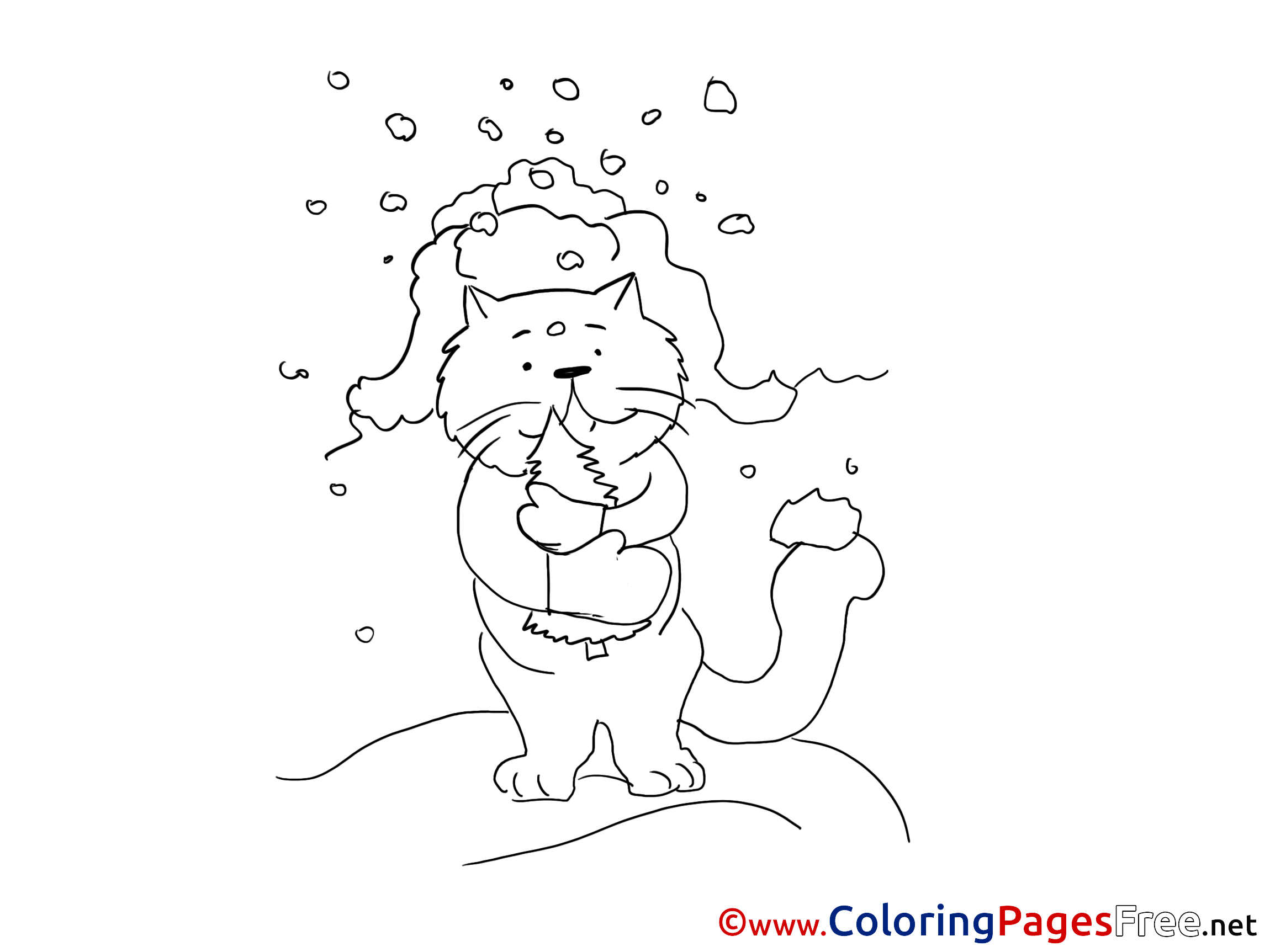 Title of Coloring Sheet: Winter Cat download printable Coloring Pages