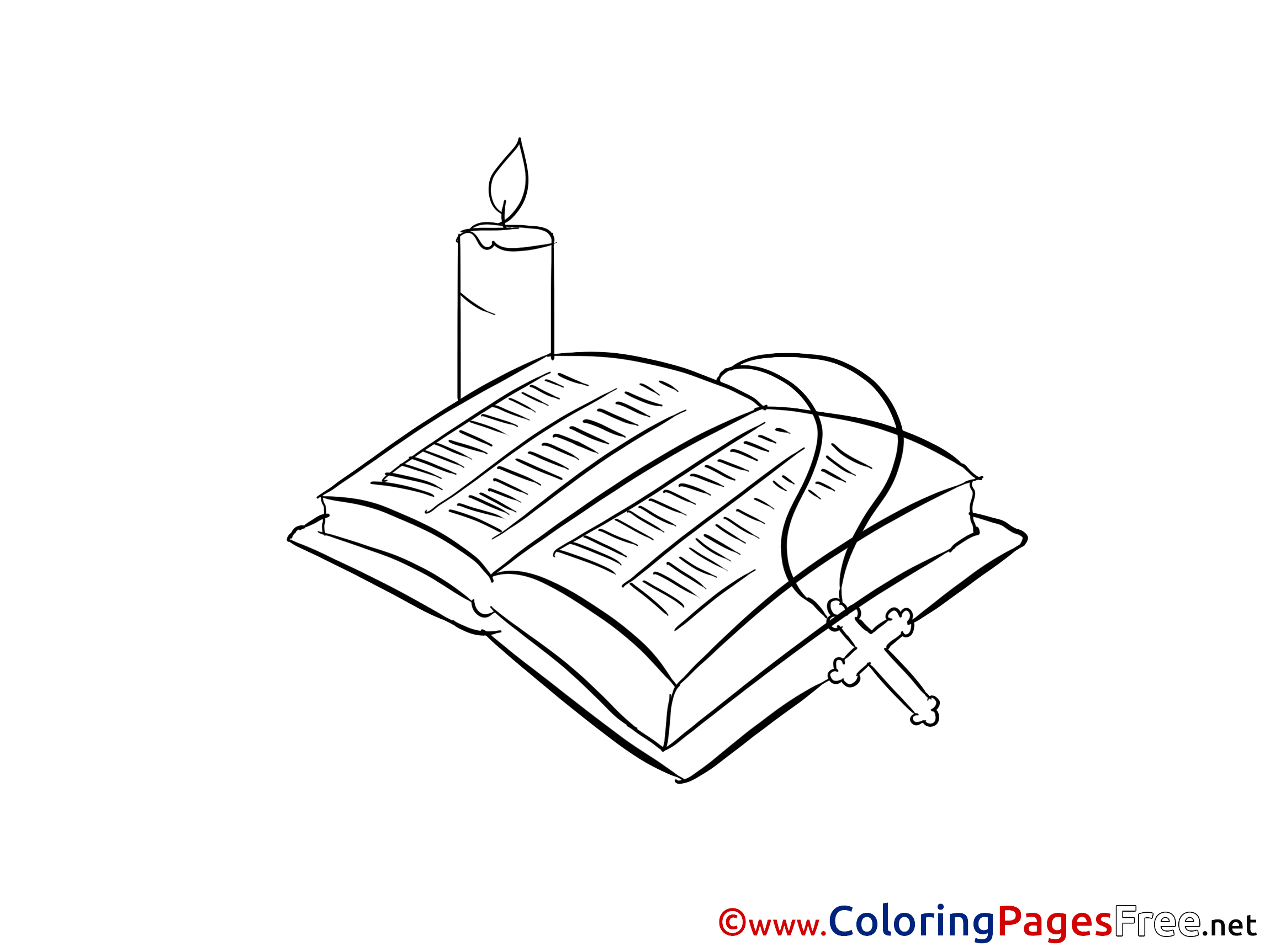 Title of Coloring Sheet: Candle Bible free Christening Coloring Sheets