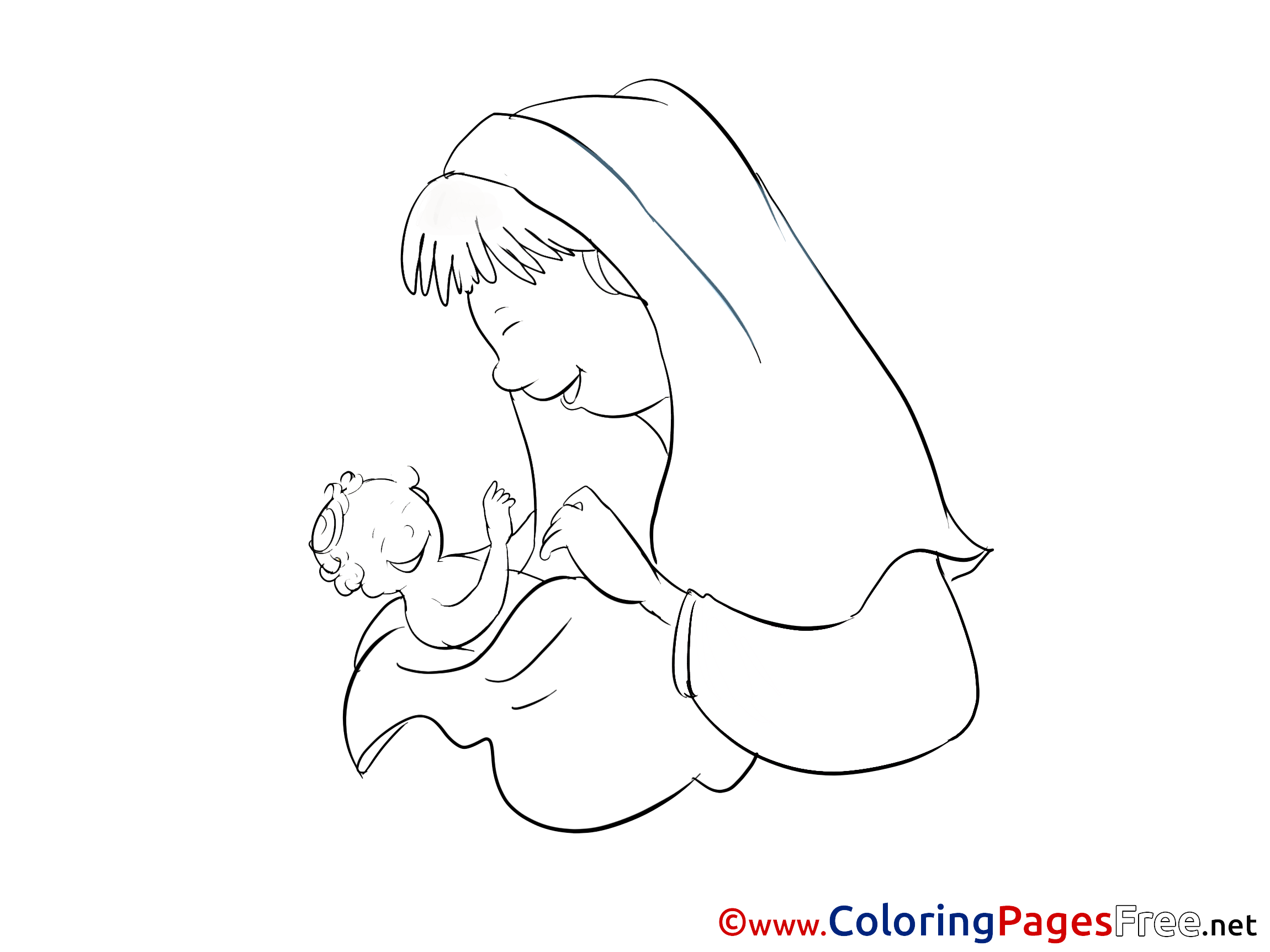 Title of Coloring Sheet: Mother for Kids Christening Colouring Page