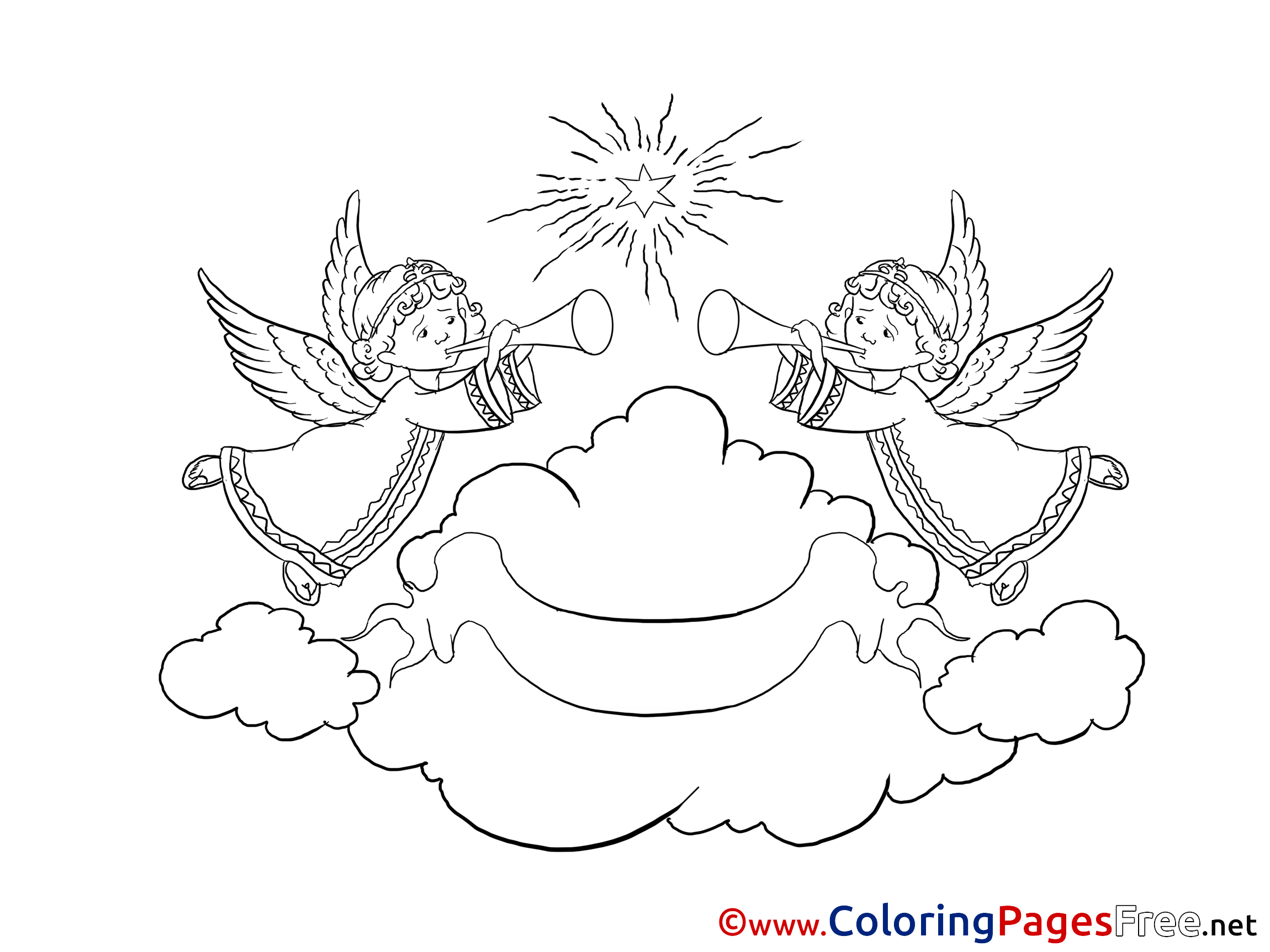Title of Coloring Sheet: Cloud Angels printable Coloring Pages Christmas