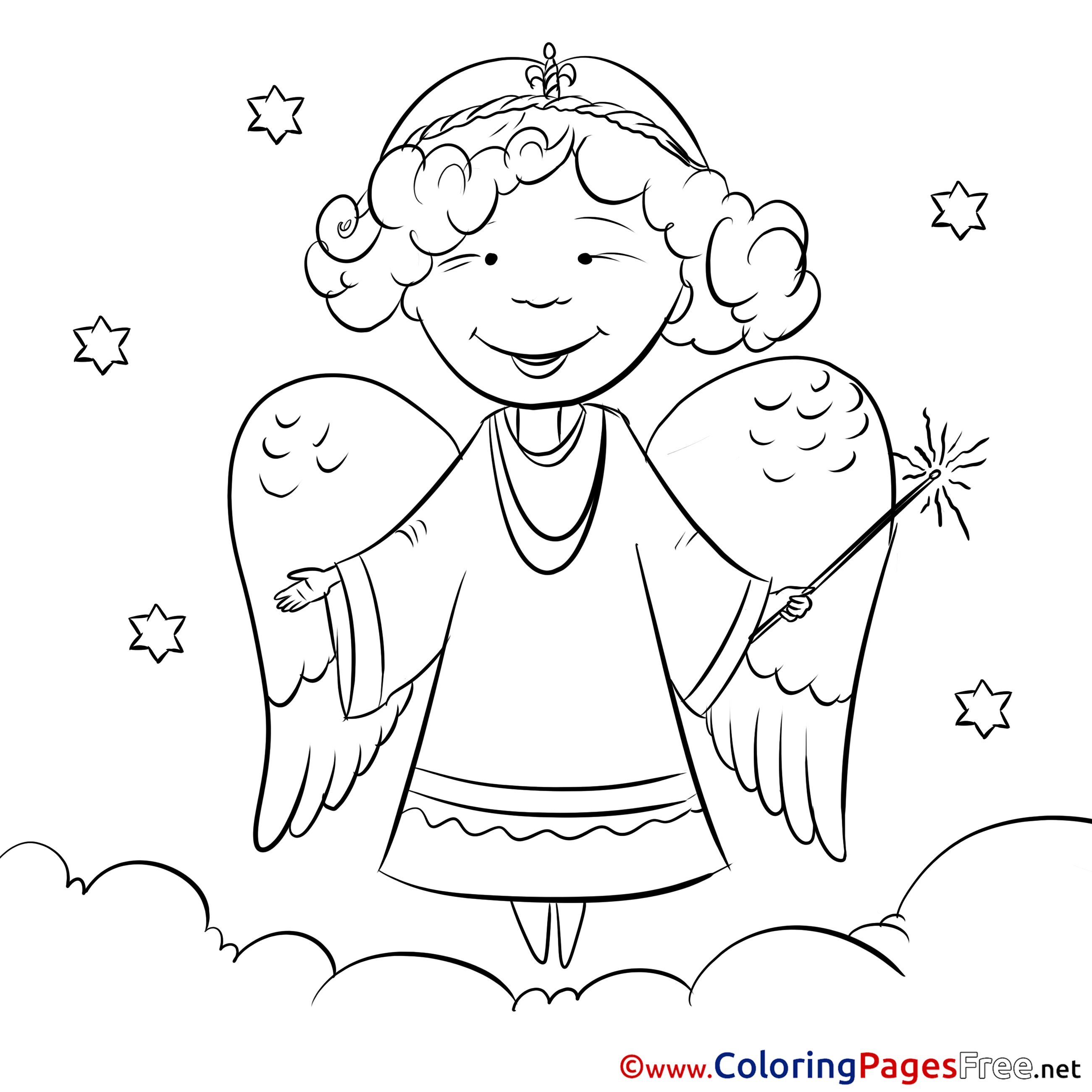 Clouds Angel Christmas Coloring Pages free