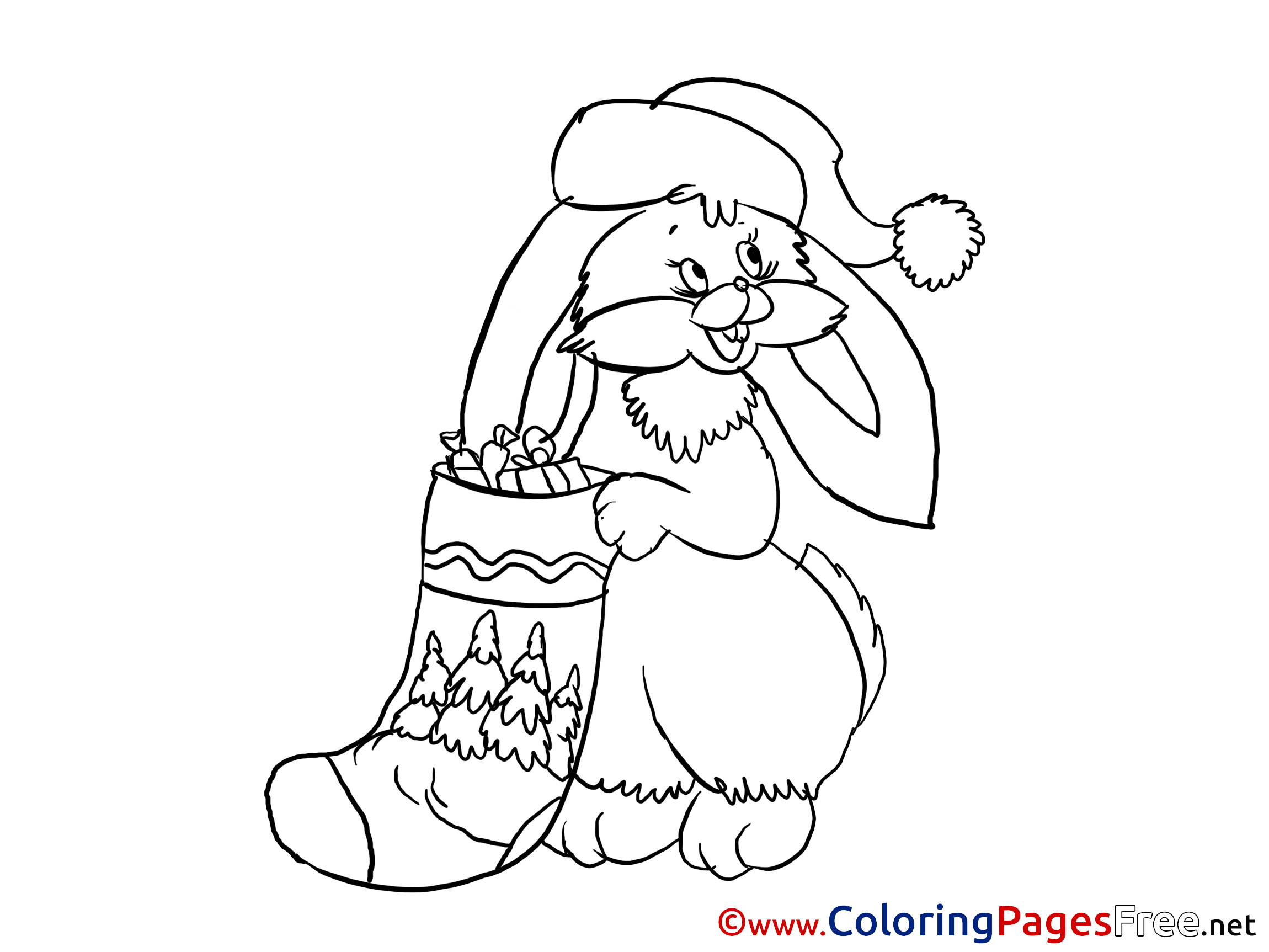 Title of Coloring Sheet: Rabbit Children Christmas Colouring Page