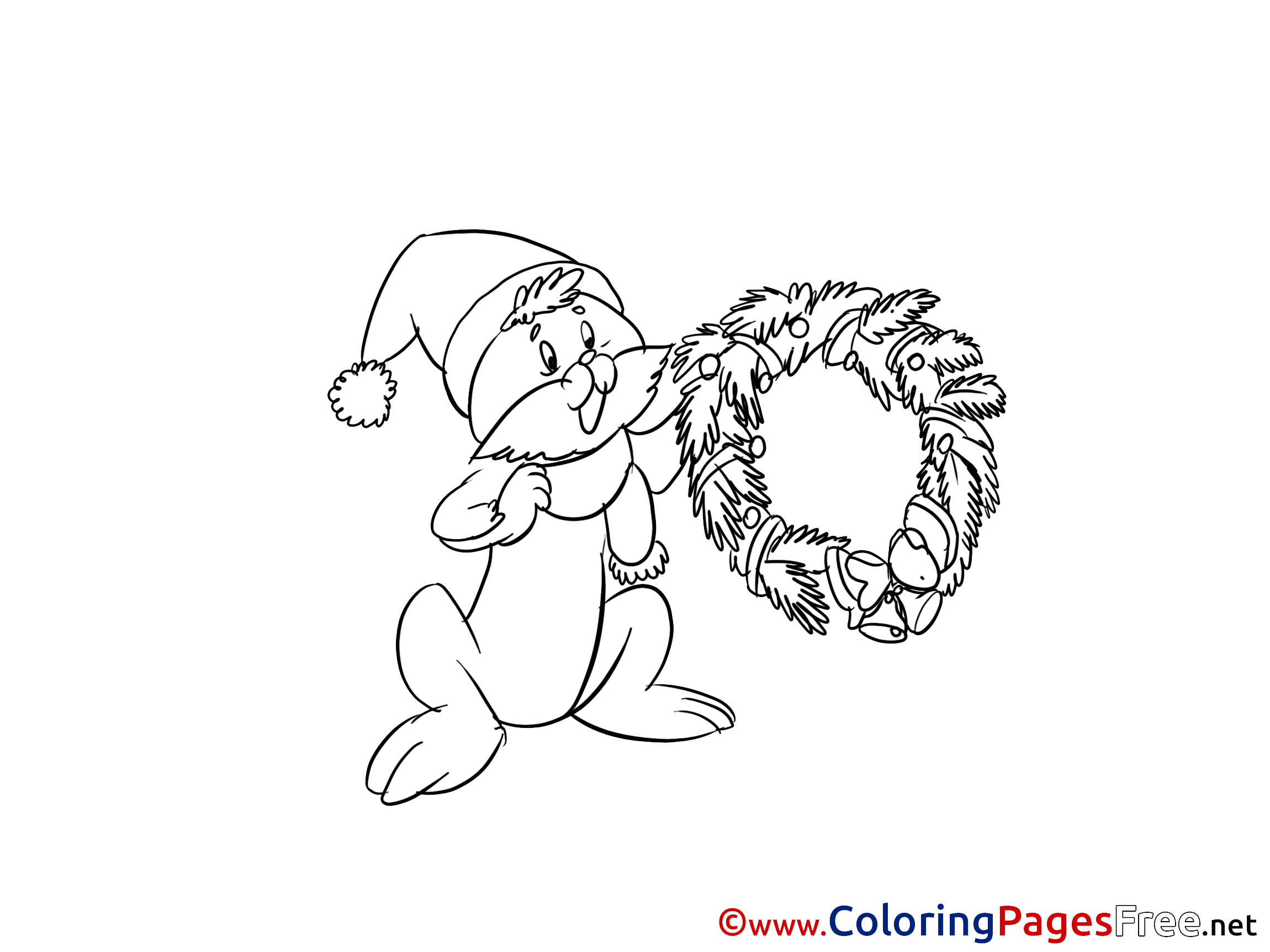 Title of Coloring Sheet: Rabbit free Christmas Coloring Sheets