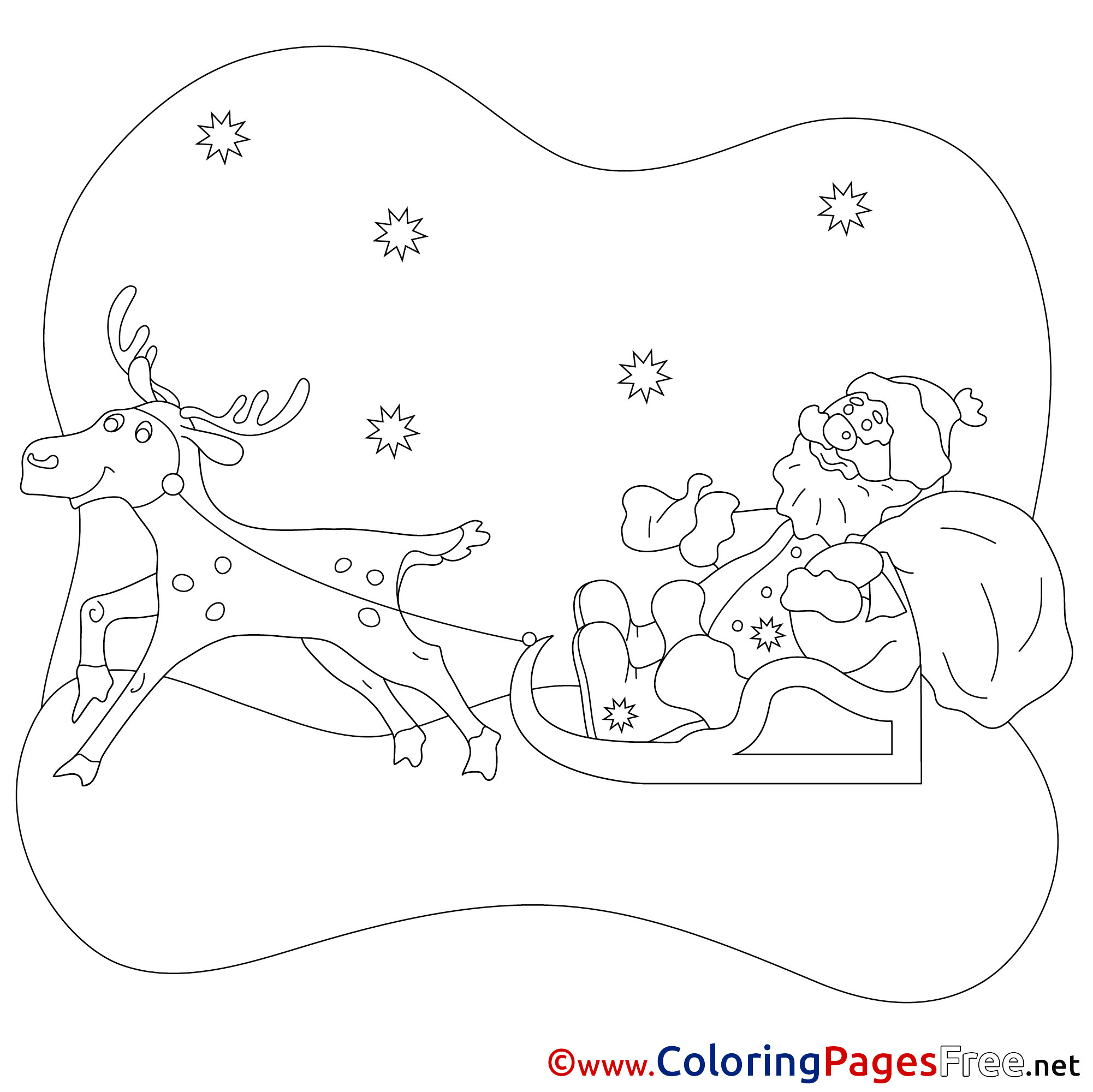 Snow Deer Santa Claus Kids Christmas Coloring Pages