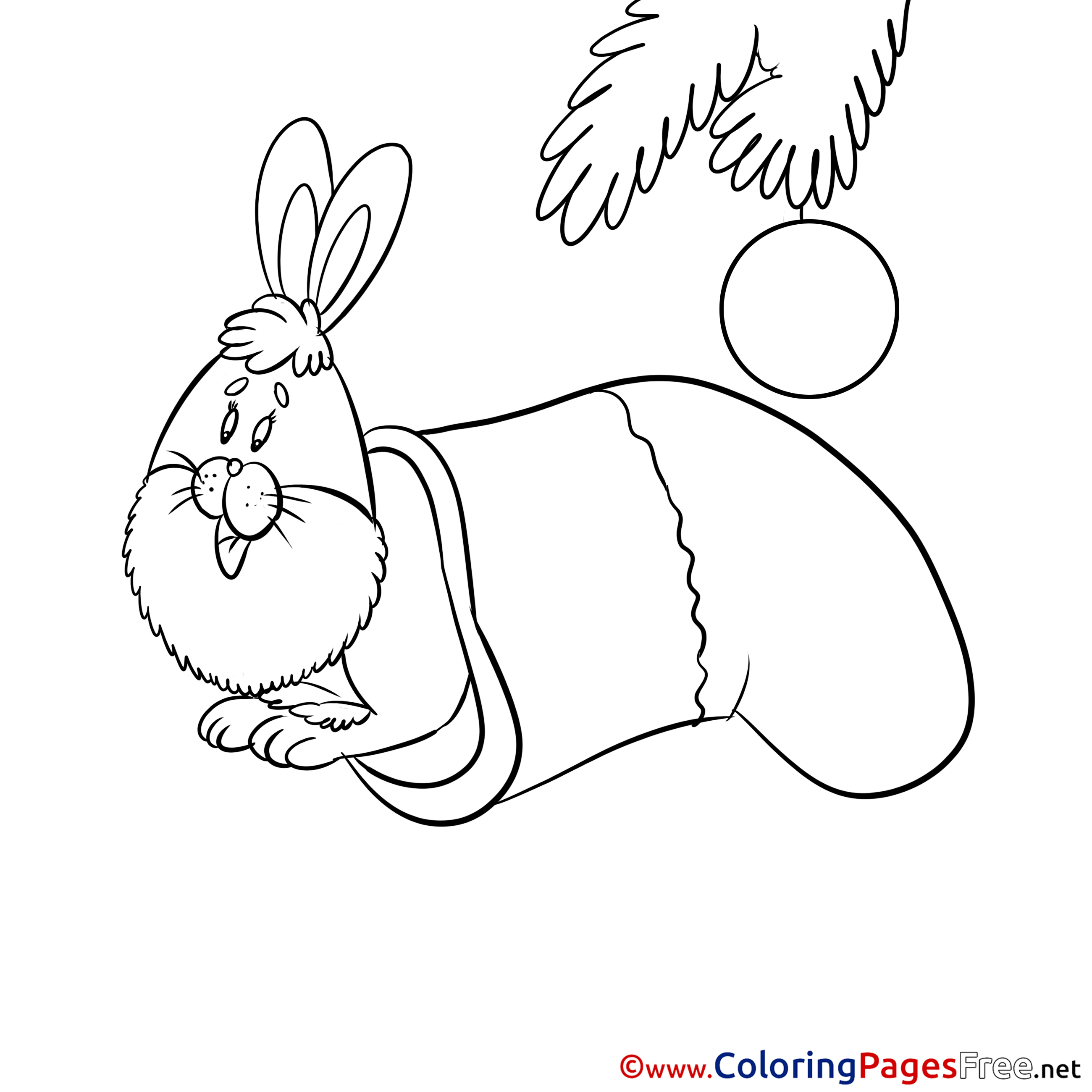 Title of Coloring Sheet: Sock Hare Coloring Sheets Christmas free
