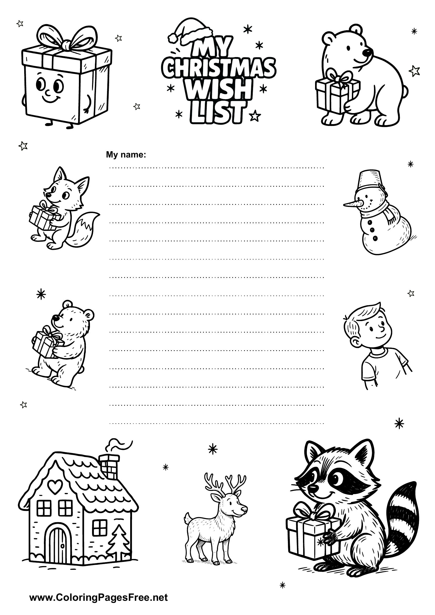 Diese Malvorlage als PDF-Datei: Printable Wish List