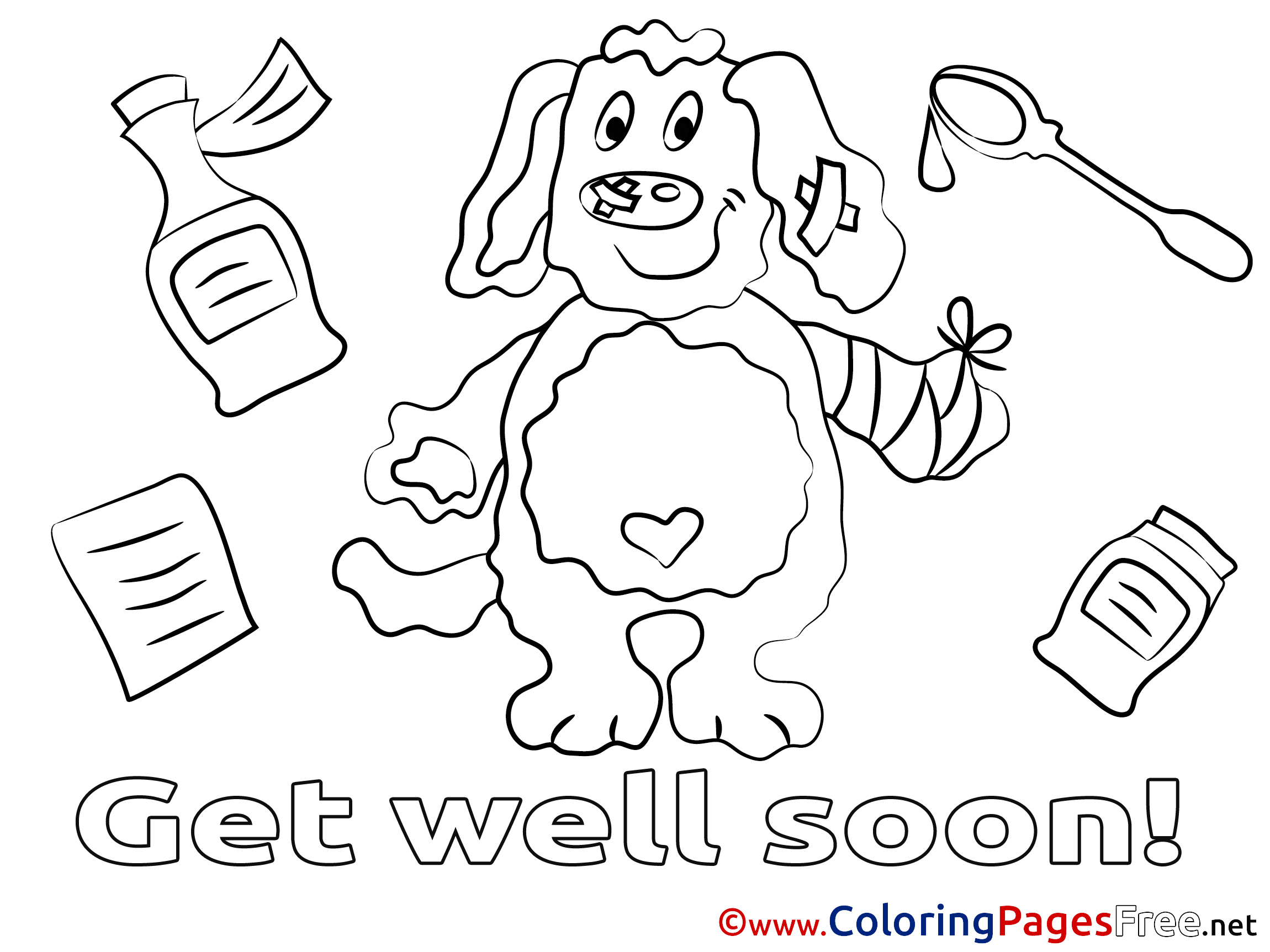 Title of Coloring Sheet: Dog for Kids Get well soon Colouring Page