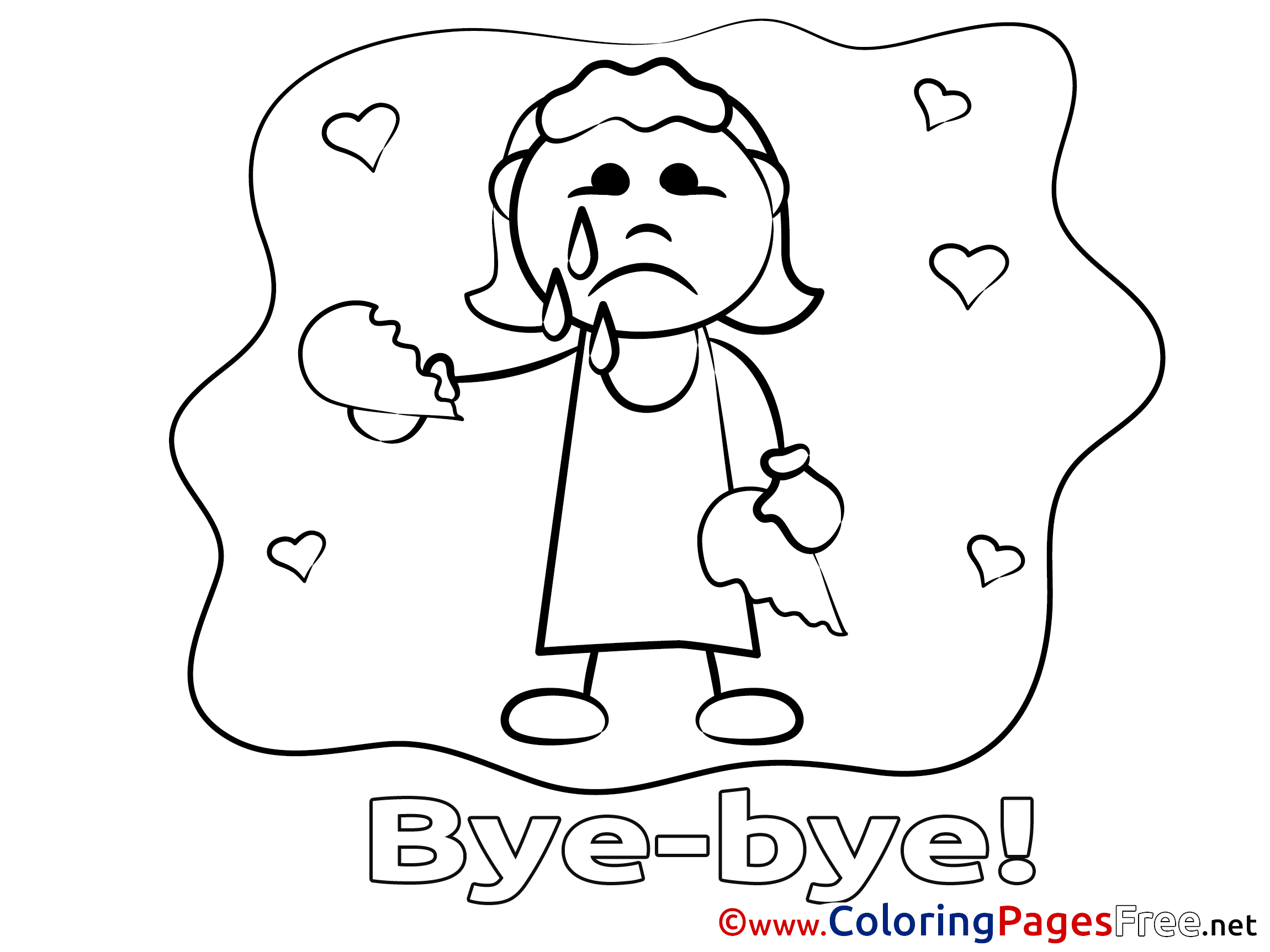 Girl for Kids Good bye Colouring Page