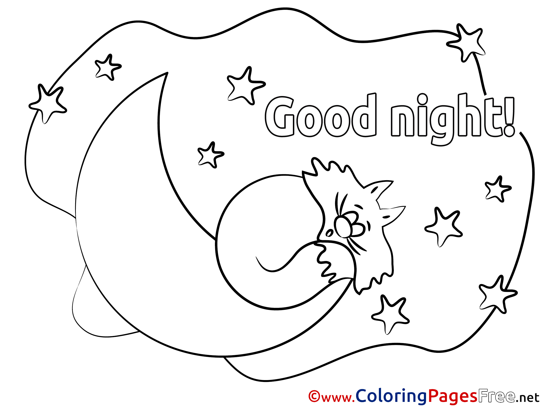 Title of Coloring Sheet: Pictute Moon Colouring Page Good Night free