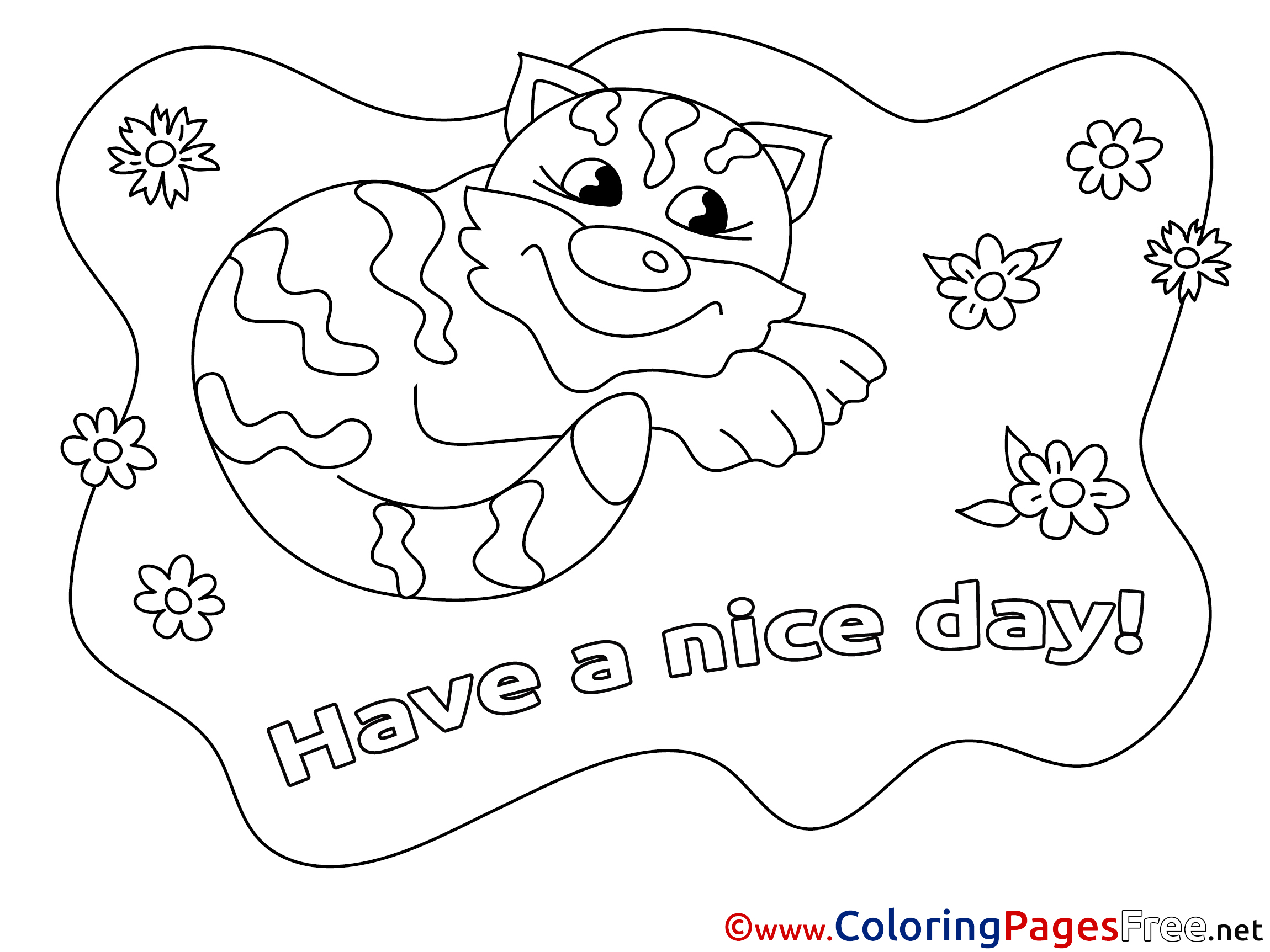Title of Coloring Sheet: Cat free Colouring Page Have a nice Day